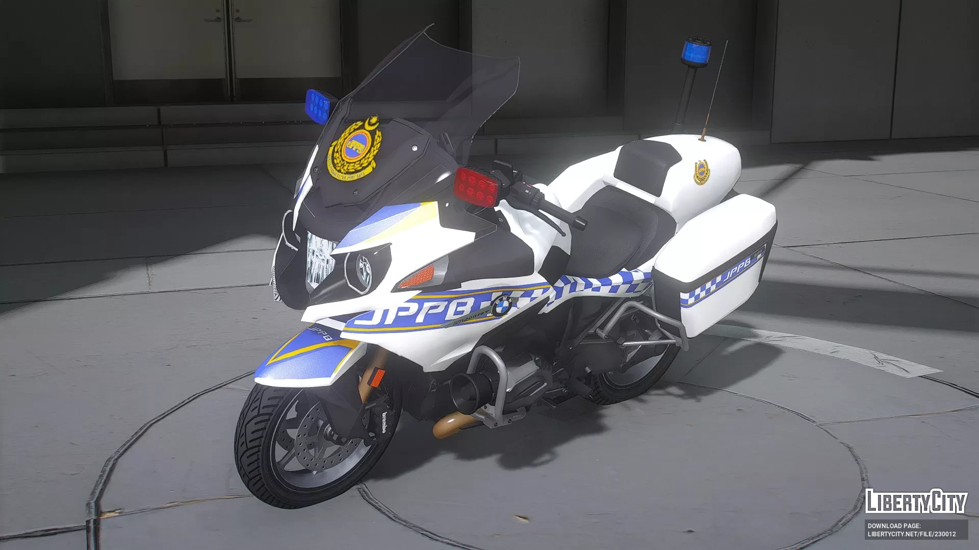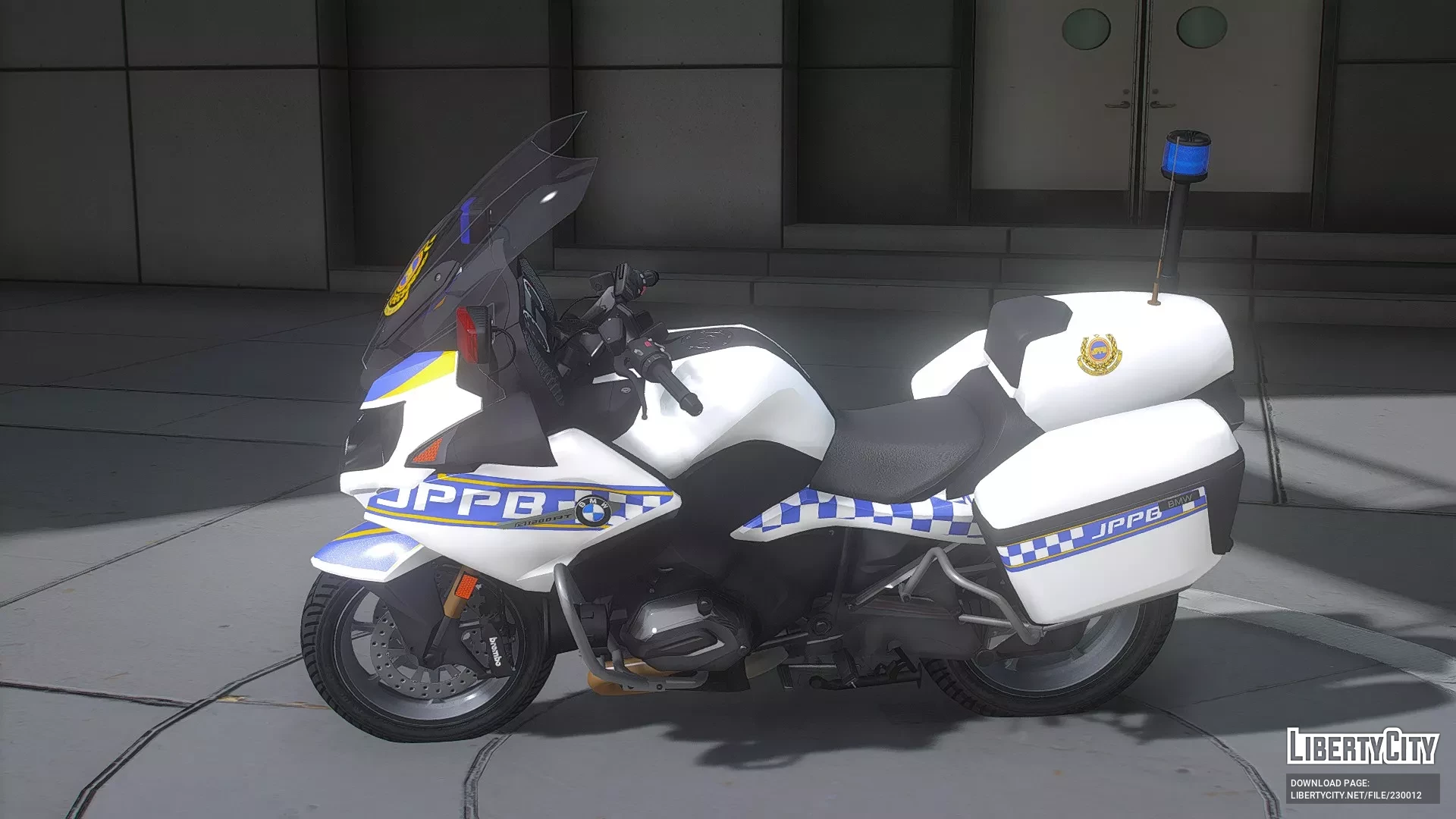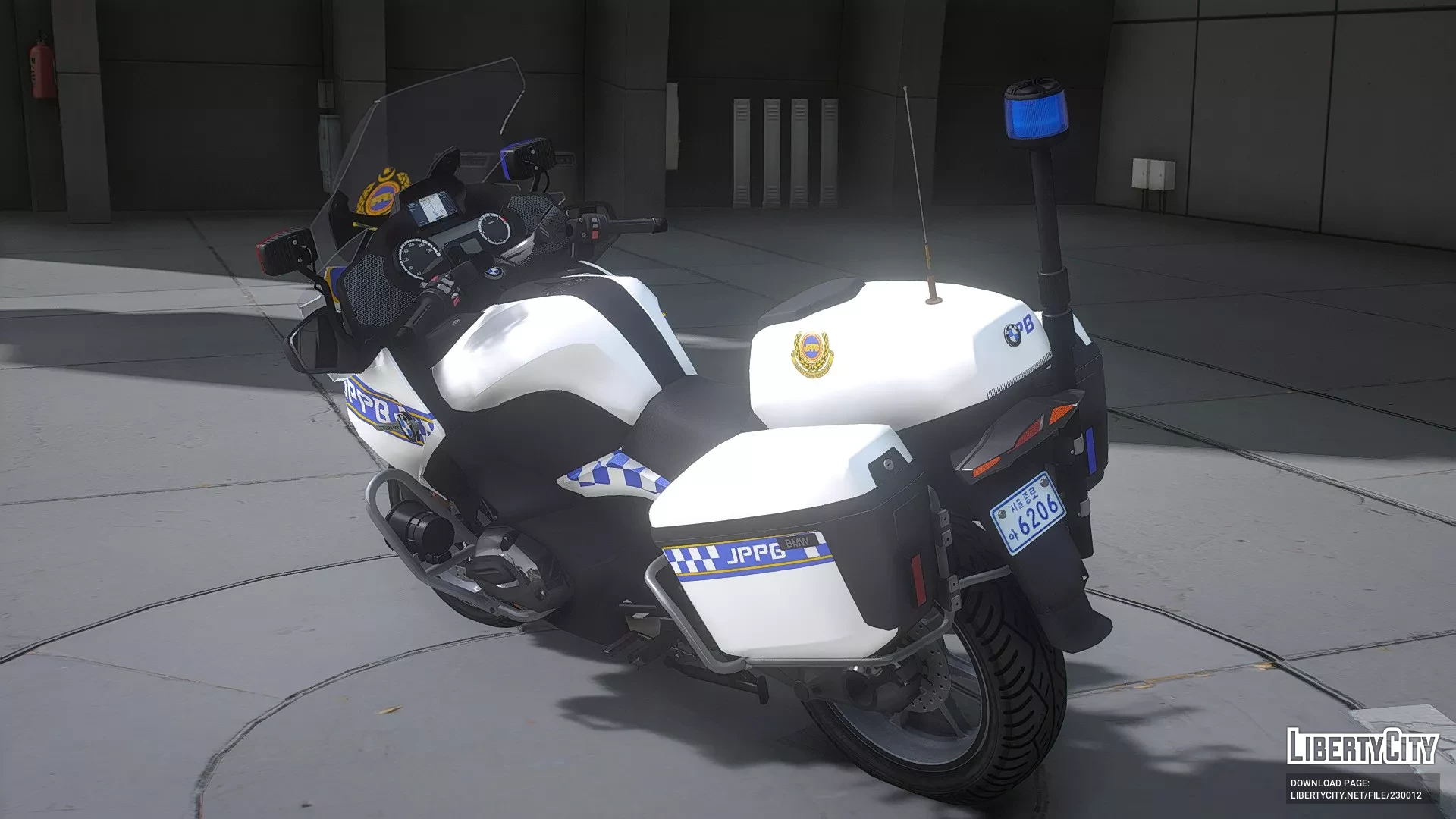 BMW R1200RT для GTA 5. Передняя часть: Ветровое стекло увеличенного размера с чёрной тонировкой и крупной эмблемой JPPB придаёт мотоциклу официальн...