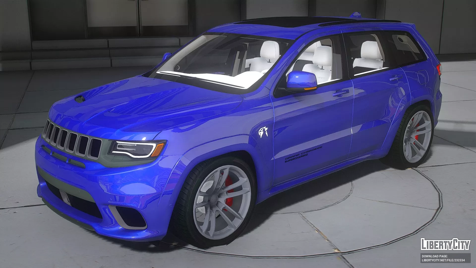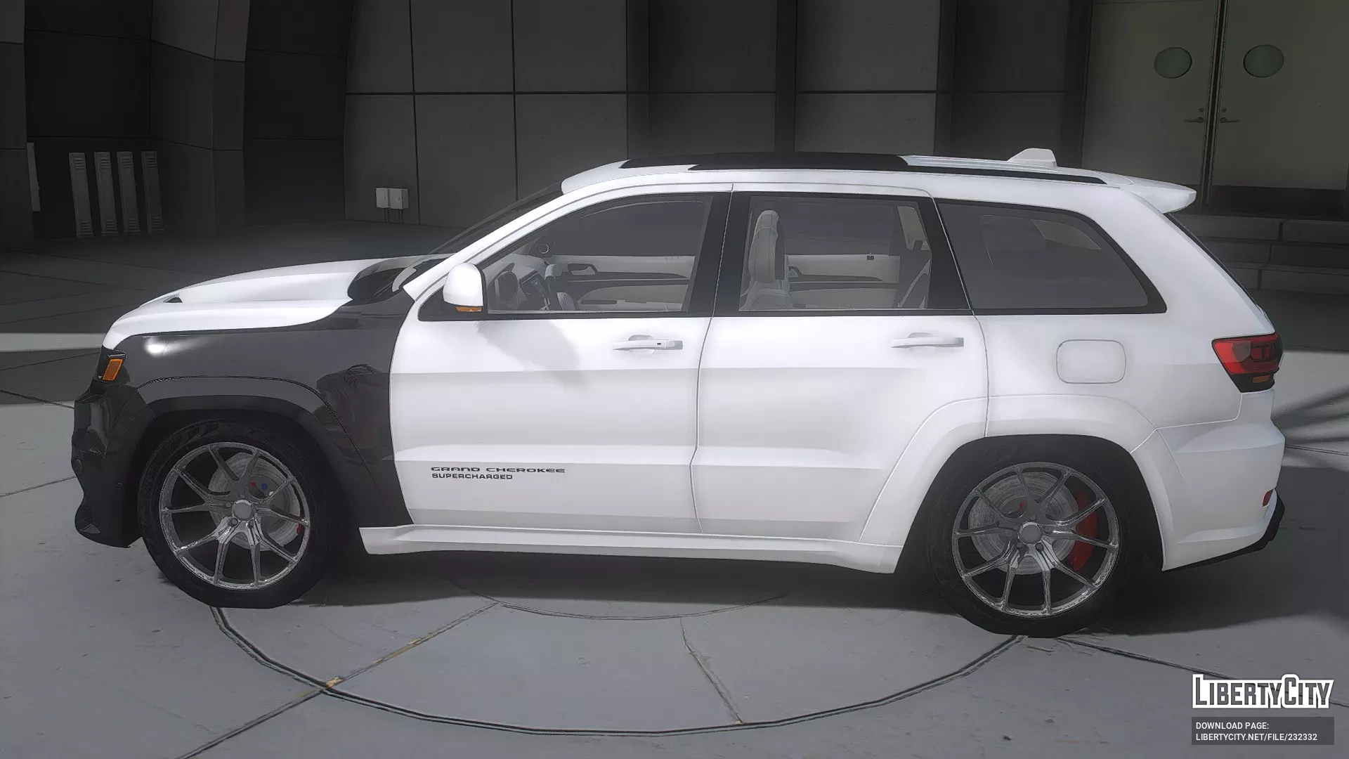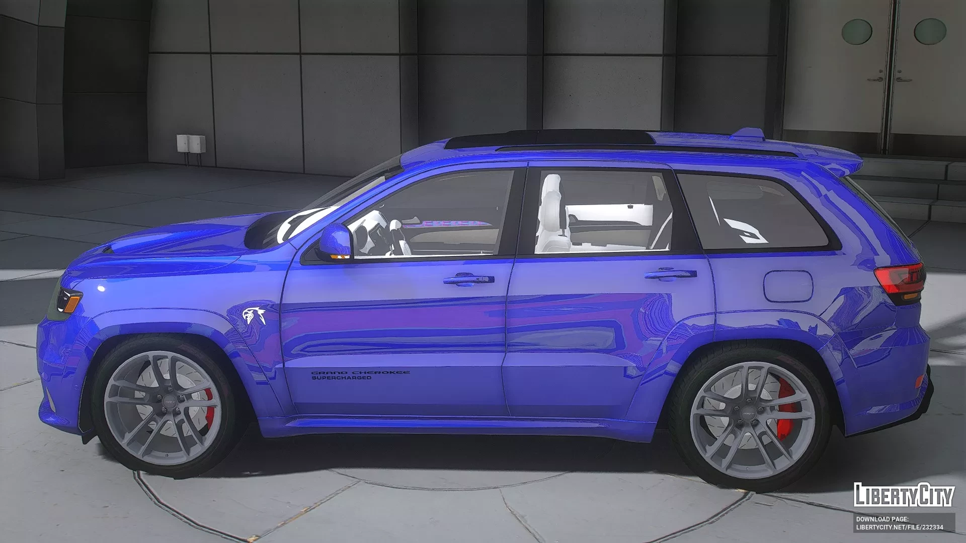 Jeep Grand Cherokee Kiko для GTA 5. Передняя часть: Капот с выразительным воздухозаборником и плавными рельефными линиями подчёркивает мощный харак...