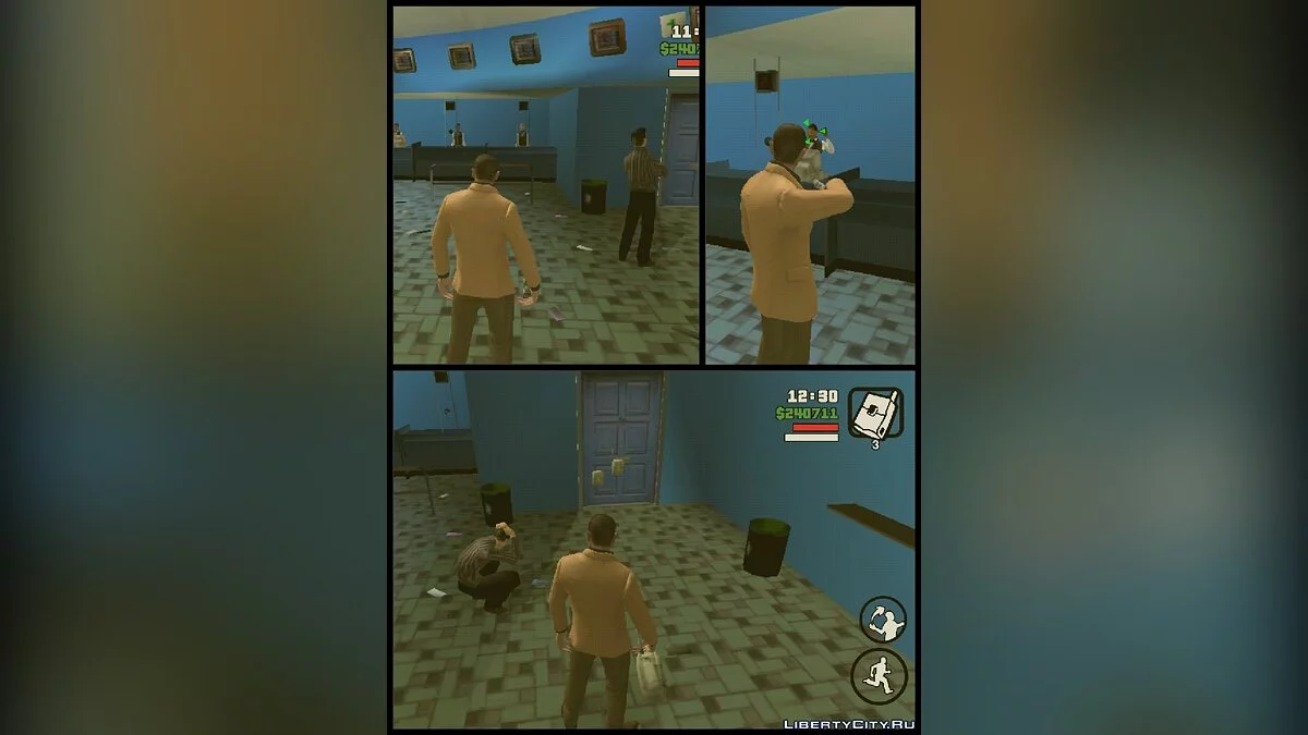 Название: Ограбление банка в LS Автор: Виталий Шарапов ( vk.com/idjei ). Установка: из папки CLEO переместить всё, в sdcard0/android/data/com.rockstargames.gtasa. Описание: Данный мод даёт возможность игроку ограбить банк. Банк находится напротив Мэр...