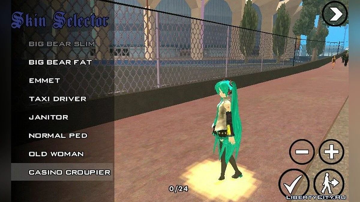 Miku Anime Girl Skin For Android GTA SA! Особенности: - Полная скелетная анимация. - Текстуры HD качества - Правильное положение оружия в руках