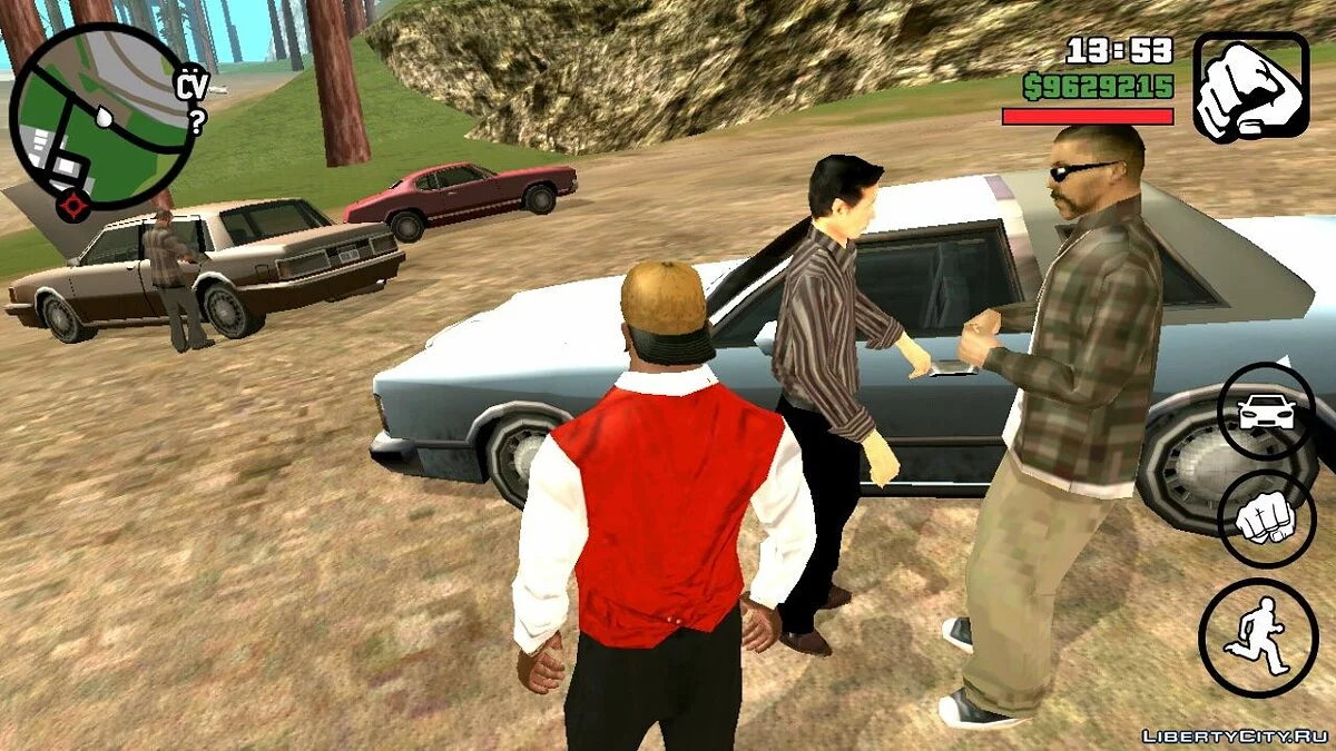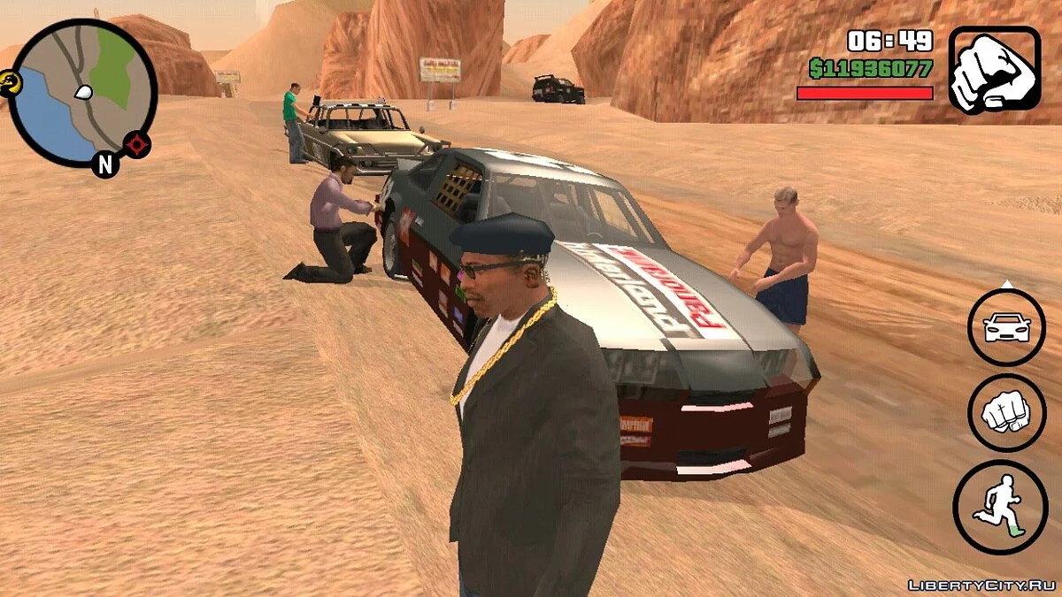 Теперь жизненная ситуация добавлена возле деревни Angel Pine. - На парковке стоит машина и водитель около нее. - Возле второй машины стоят два человека и разговаривают. - Возле третьей машины стоит мужик и проверяет бак. - Через дорогу стоит машина...