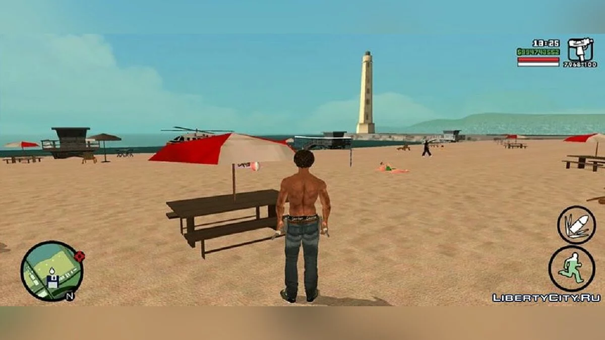 Realistic Santa Maria Beach for SA Mobile Скрипт добавляет реалистичности на пляже Санта-Мария и Верона. Теперь по пляже расставлено множество зонтов. Можно увидеть волейбольную сетку, замки из песка, солнцезащитный крем, тарелки с едой. Люди купают...