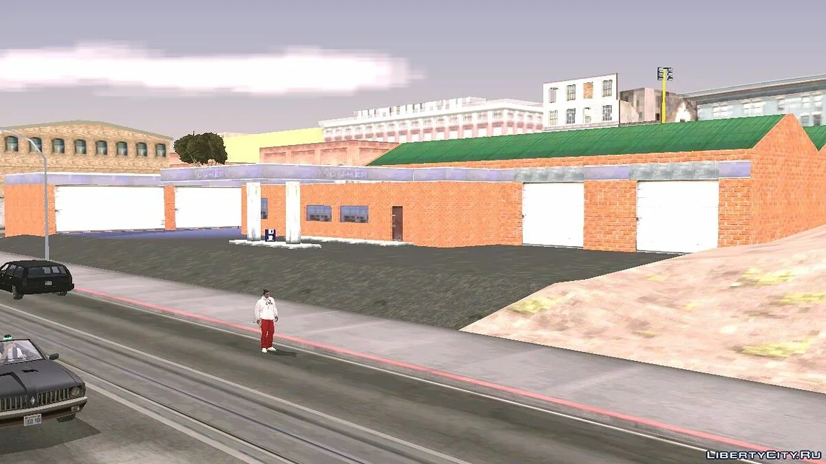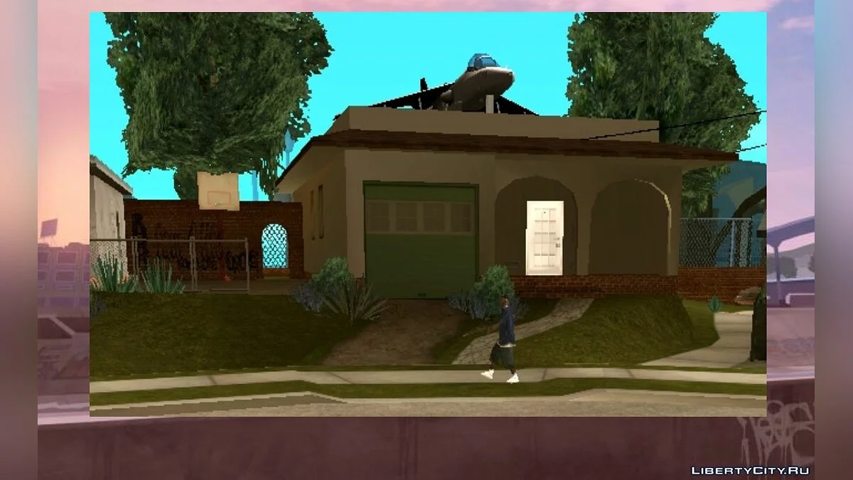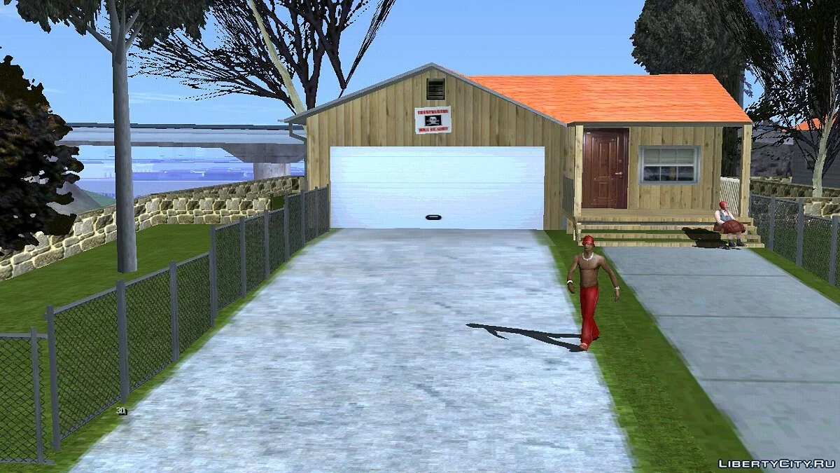 Мод меняет текстуры гаража Карла в Сан-Фиерро. Теперь кирпич имеет естественный размер, а крыша из металлочерепицы.