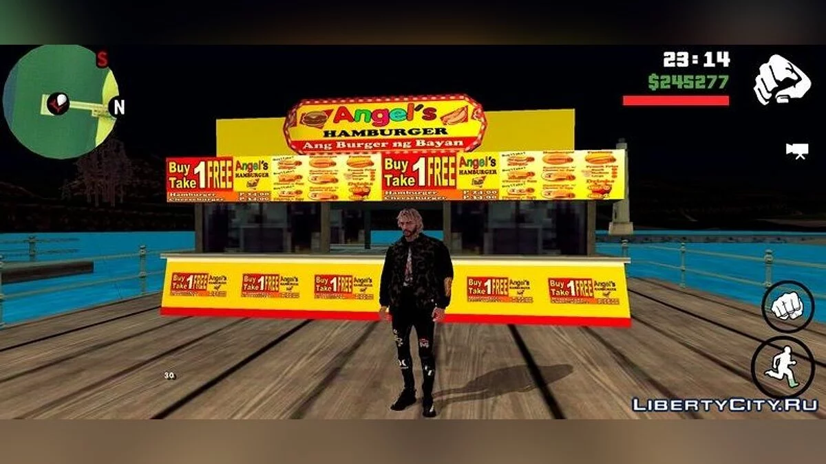 Food Stalls Retexture Mod includes ANGELS BURGER, MASTER SIOMAI and TURKS for Mobile Данный мод, заменяет текстуры ларьков на пляже в Лос-Сантосе. Особенности: - Хорошее качество текстур; - Не портит атмосферу игры....