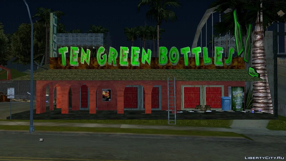 Ten Green Bottles Retexture 1.0 for mobile Особенности: - Новые текстуры бара; - Небольшой размер текстур; - Нет глюков на слабых устройствах; - Добавлены новые объекты. Установка: Файлы с папки "with alpha", добавить в "GTA3.t...