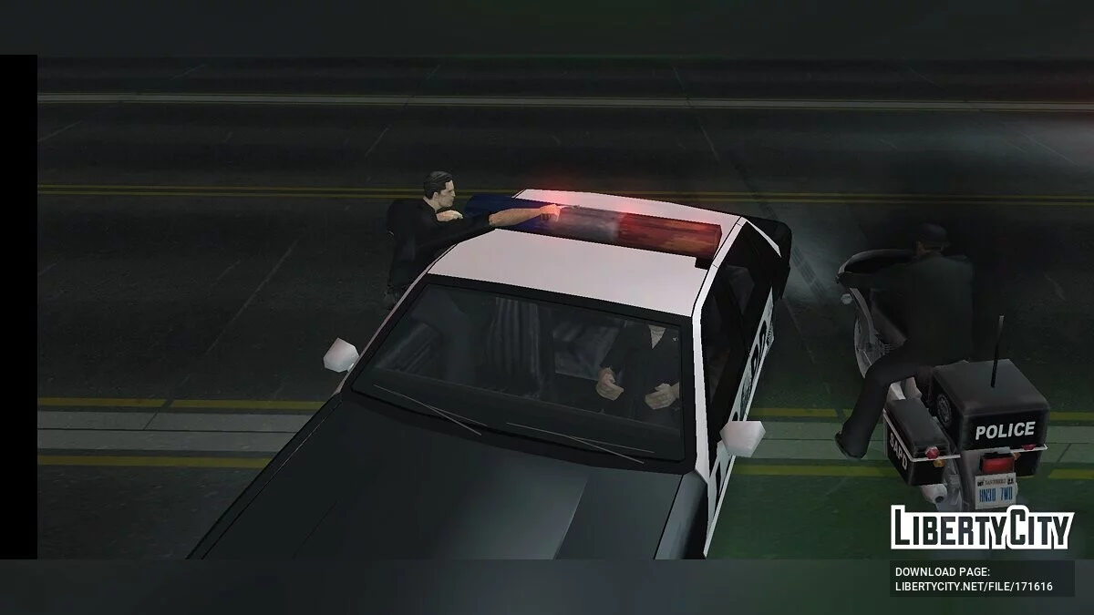 Мод добавляет возможность копам стрелять из машины после трёх звёзд. Установка : Распаковать в Android/data/com.rockstargames.gtasa