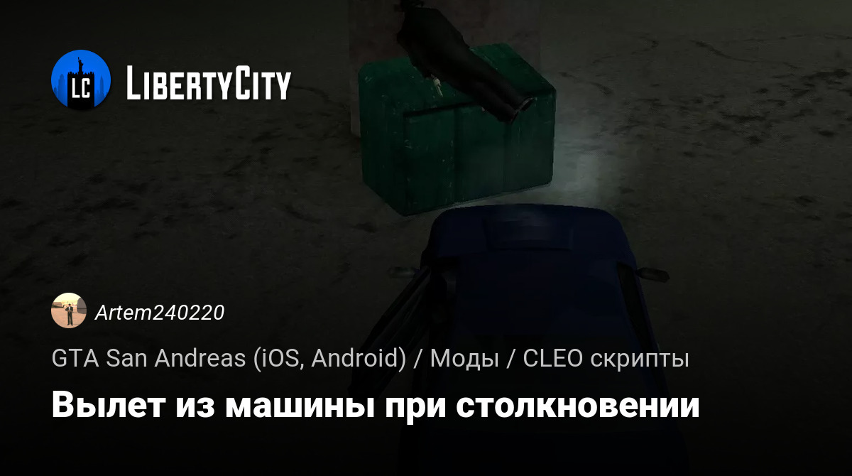 После скачивания мода, при столкновении машины с каким то либо объектом, CJ будет вылетать из лобового стекла. Это работает только на CJ, другие же водители при столкновении не будут вылетать.