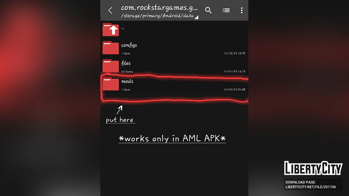 Как использовать? Первым делом важно, чтобы у вас был проводник папок. Откройте его, поместите в папку data, а в mods, если у вас нет папки mods, просто создайте ее и затем поместите туда мод, но помните, что это работает в AML приложении.