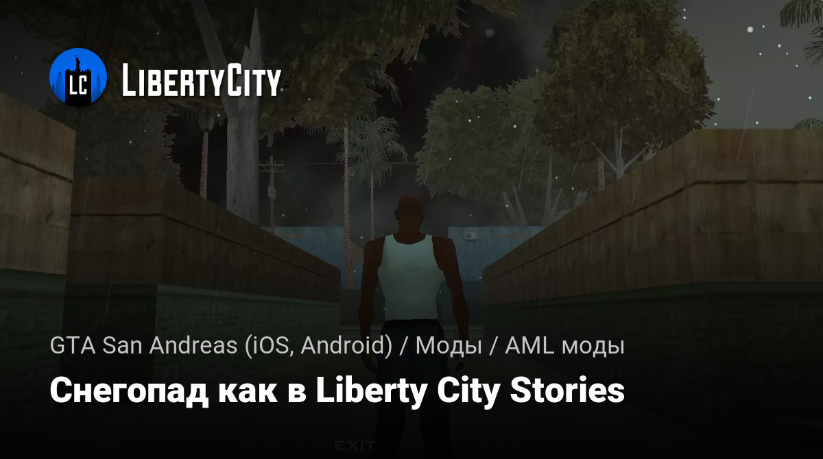 Данный мод добавляет эффект снега из GTA Liberty City Stories в GTA San Andreas. Снег идёт постоянно, поэтому мод не рекомендуется для слабых устройств.