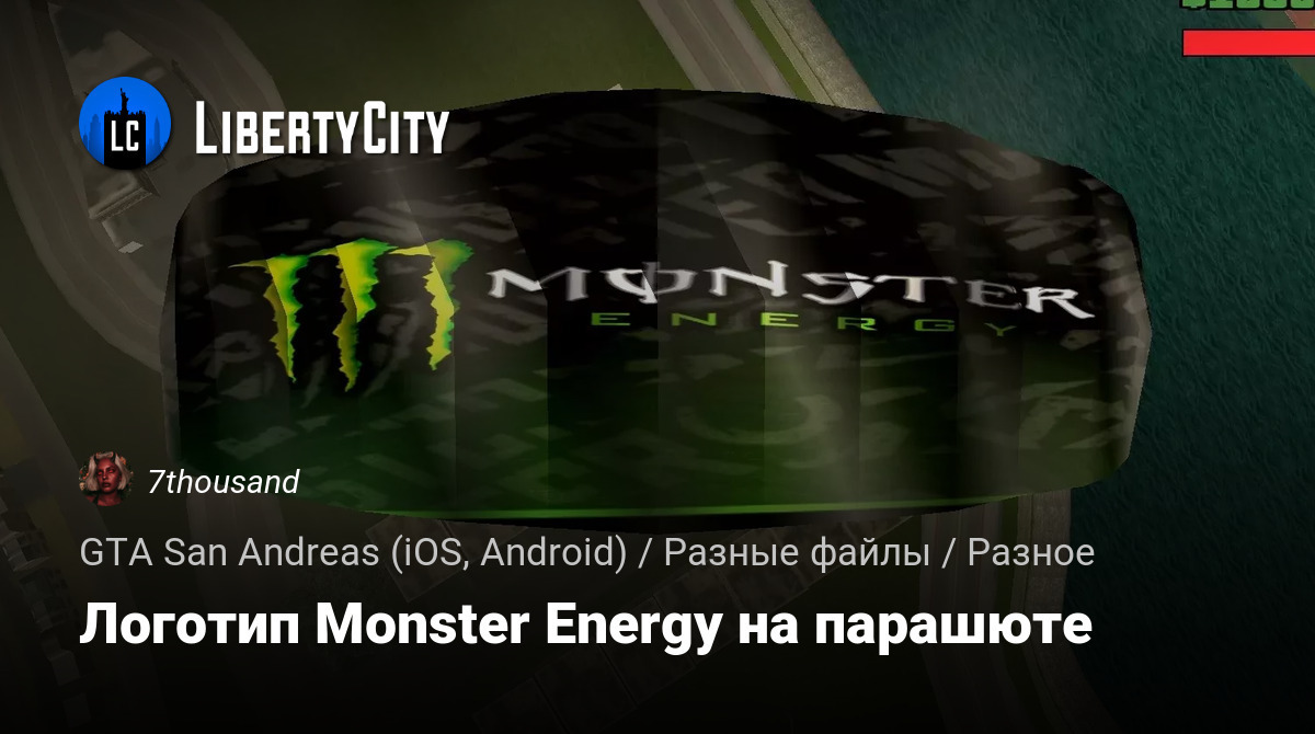 Этот мод заменяет стандартную текстуру купола парашюта в GTA San Andreas на текстуру с логотипом Monster Energy.