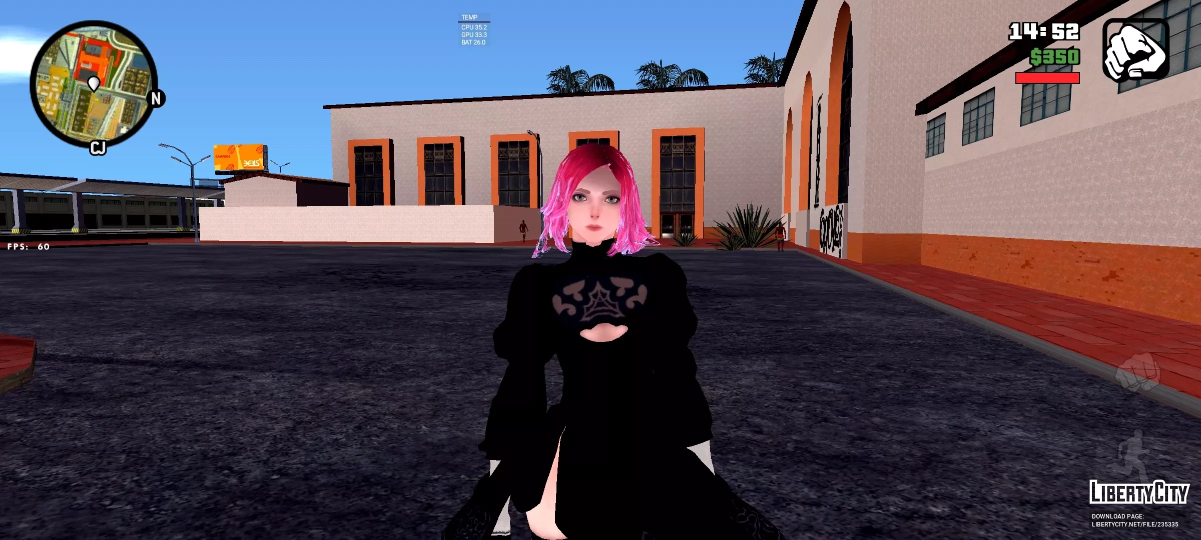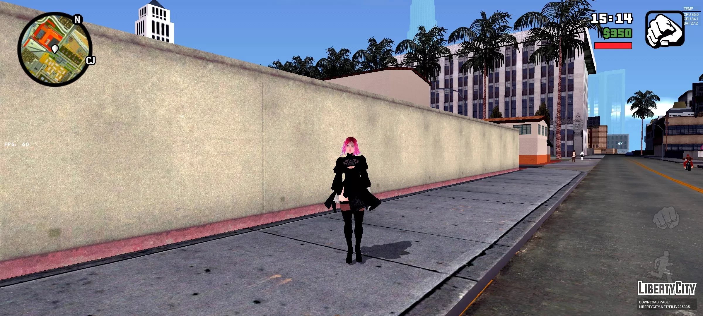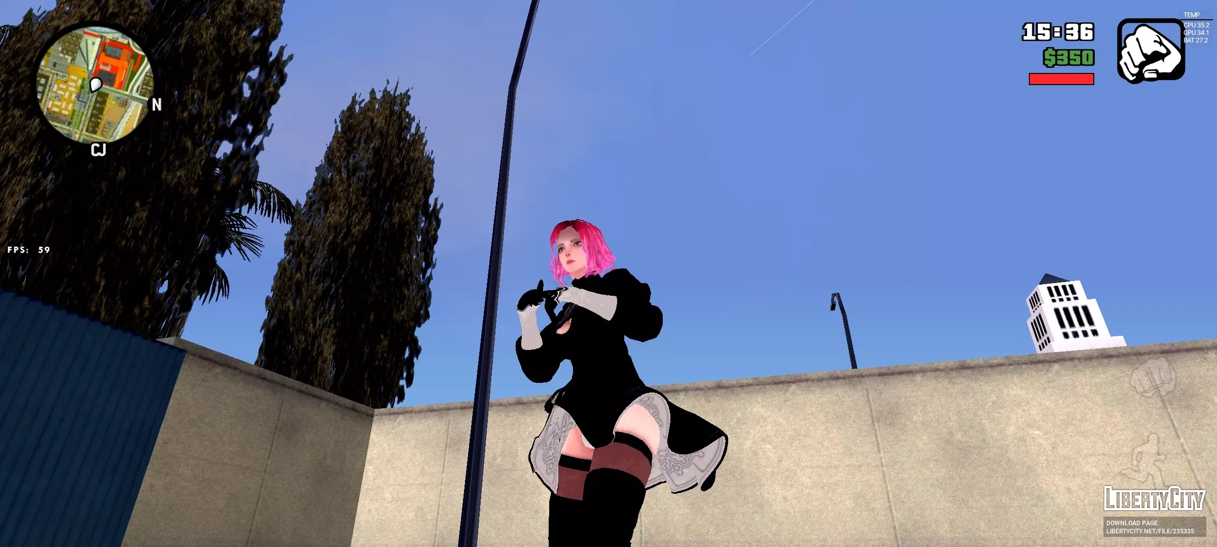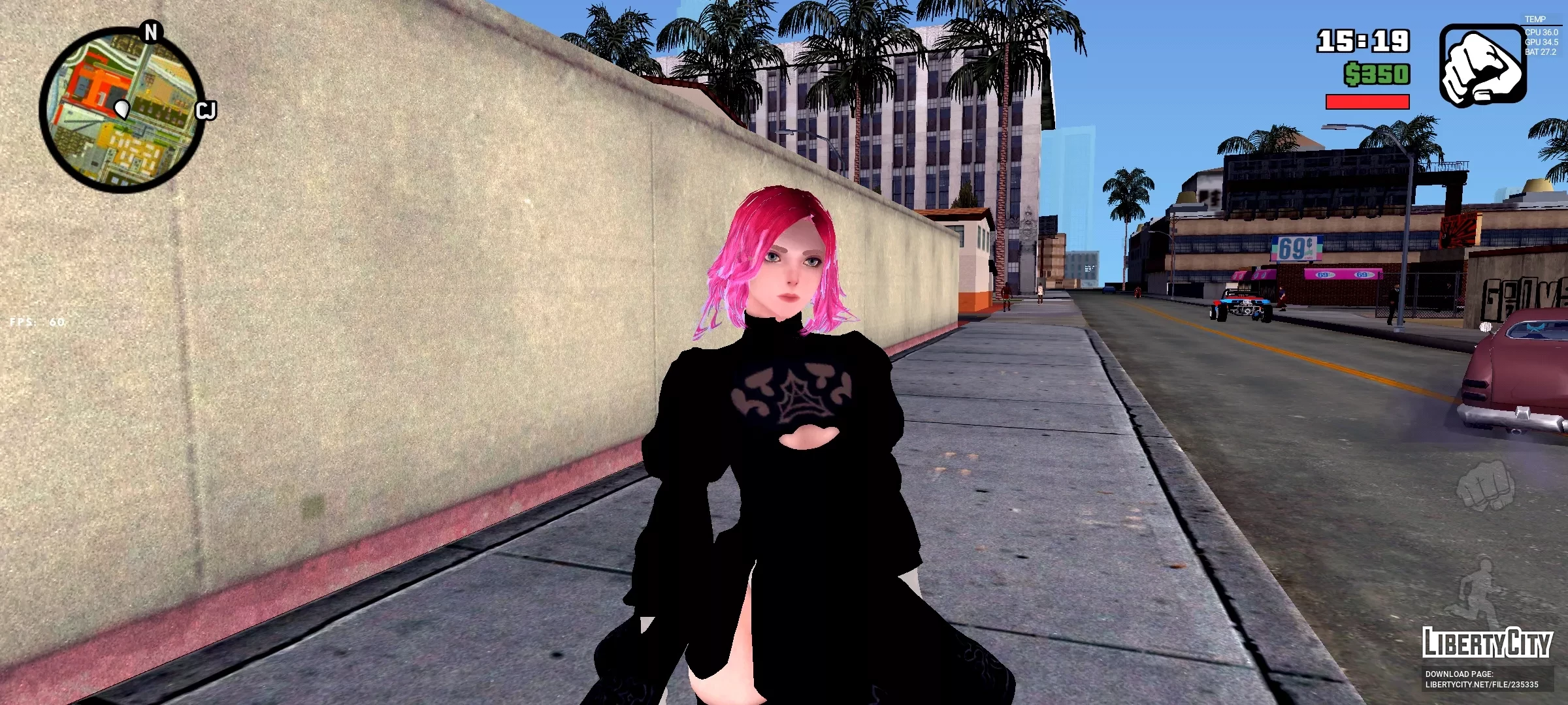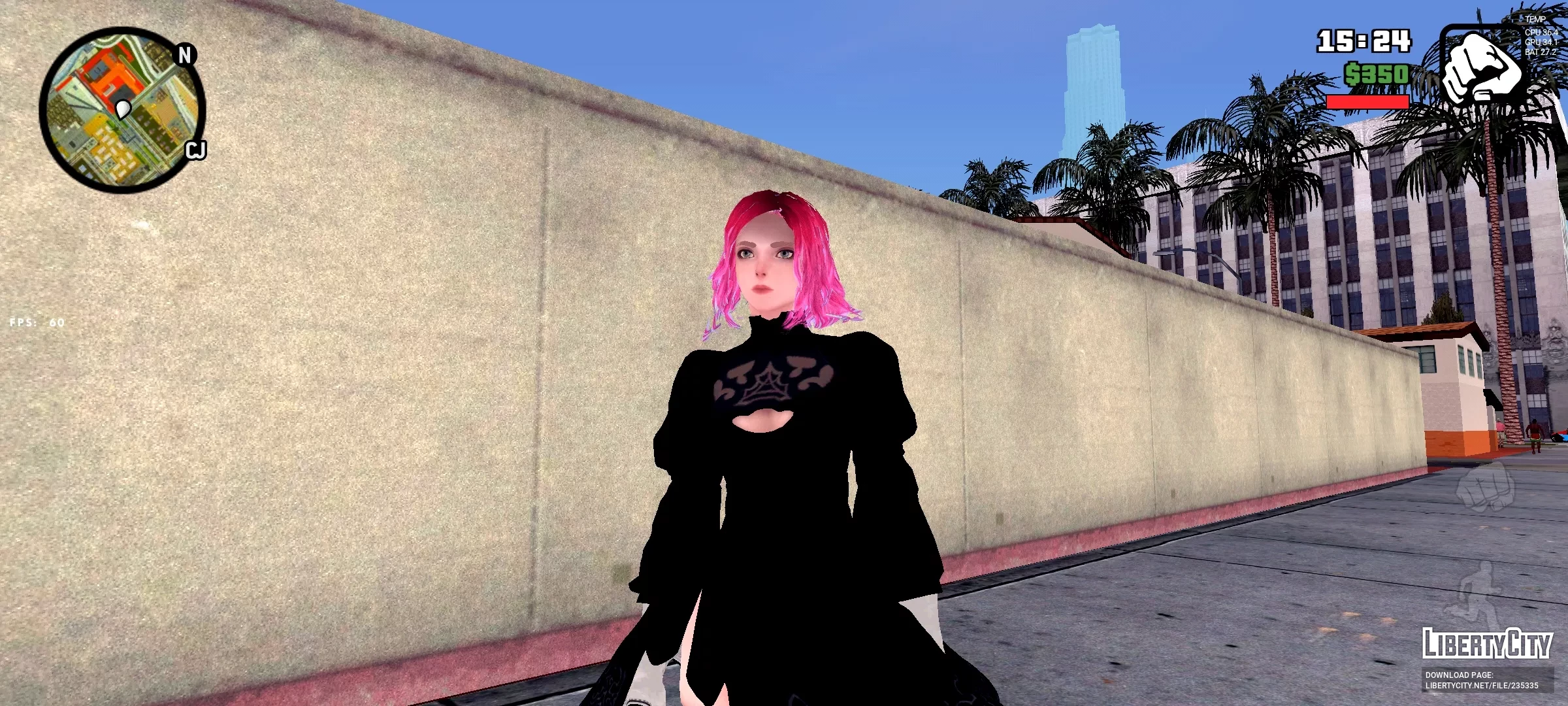 Представляю новую версию моего персонажа из GTA Online — Хэлла, теперь в костюме 2B из NieR: Automata. Этот мод был проработан в Blender, чтобы воссоздать характерный стиль персонажа, адаптированный под вселенную GTA San Andreas.