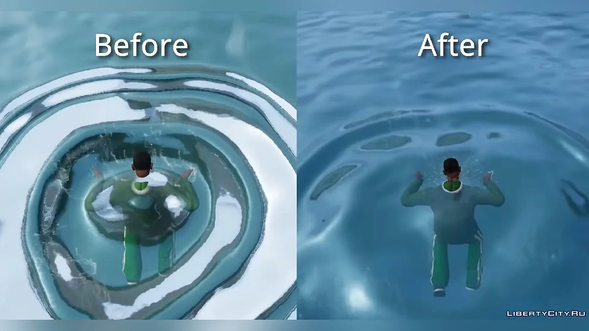 [GTA Trilogy] Water Ripple Fix (corrigir efeito de água) Данная модификация, исправит эффект волны, когда вы прыгаете в воду. Мод также поддерживает GTA 3 и Вайс Сити.