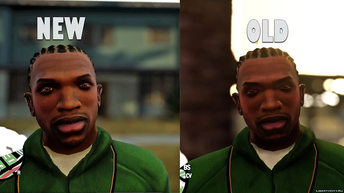 CJ face retexture 4K. Данная модификация улучшает лицо главному персонажу. Данные текстуры подходят под любую прическу.