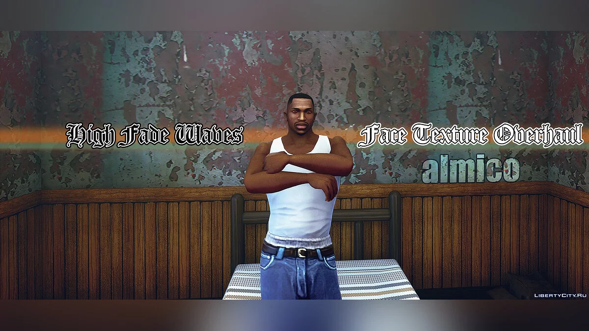 High Fade Waves With Face Texture Overhaul. Особенности: Улучшена прическа (Cesar); Изменены Normal Map; Изменены волосы; Частично изменены уши.