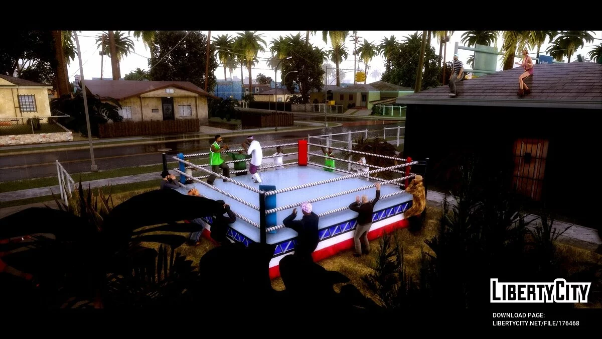 Realistic Boxing Tournament Of Grove Street При въезде на главную улицу, вы увидите ринг и двух боксеров (участника банды Grove ST. и Балласа). Вокруг ринга будут стоять братки и разные бандюки, несколько человек будут танцевать на крыше дома. Буде...