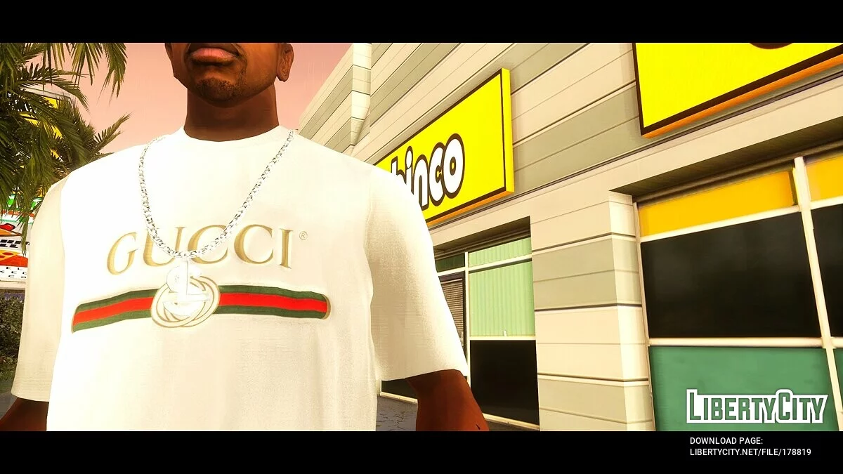 Realistic Gucci Tshirt White Особенности: Качественные текстуры; Правильное расположение на игроке; Можно найти в Бинко. Приятной игры.