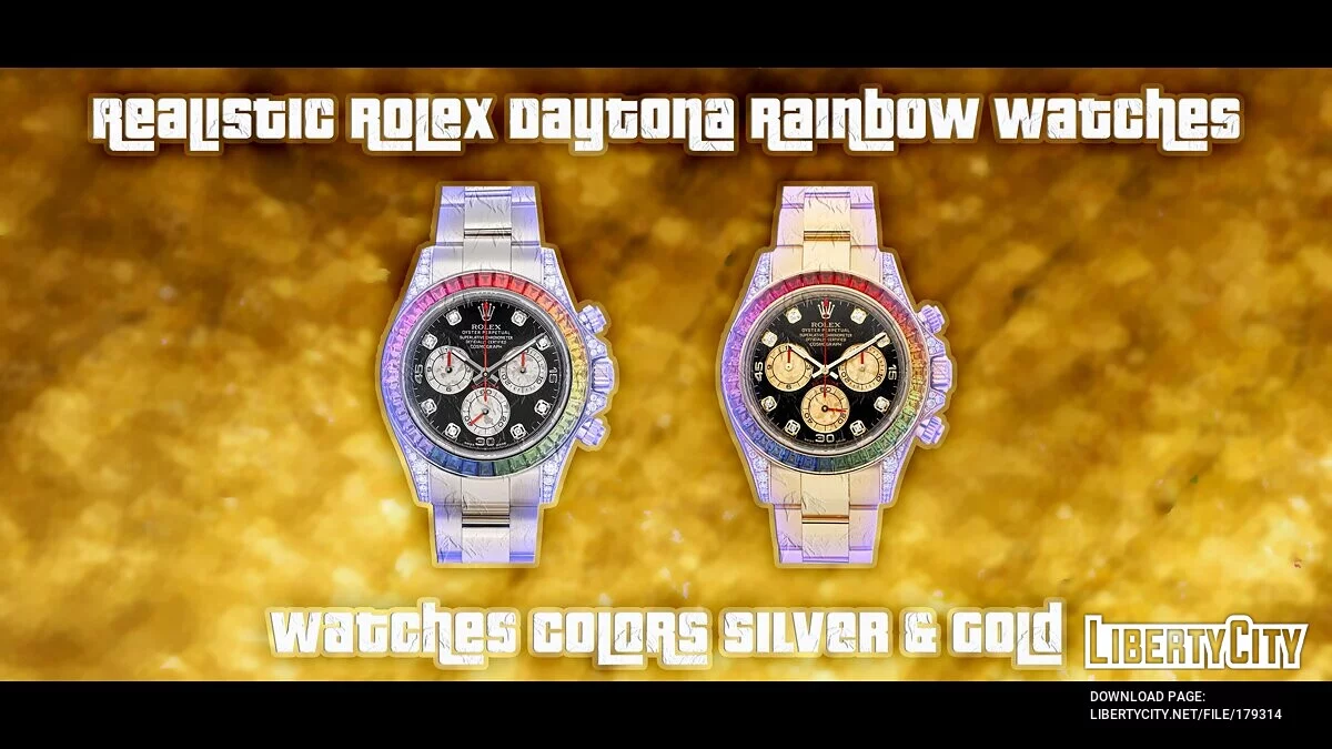 Realistic Rolex Daytona Rainbow Watches Обновление: Редизайн ремешка. Теперь он более реалистчиный. Особенности: Качественная модель; Качественные текстуры; Два варианта часов; Правильное расположение в руках; Приобрести можно ...