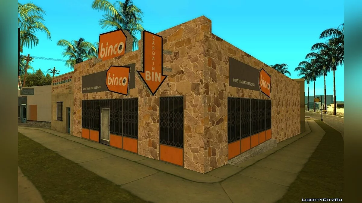 HUS LS Binco (GTA V to SA) Теперь в Лос-Сантосе будет магазин Binco из GTA 5. Модификация заменяет старый магазин. Найти его можно возле спортзала. Особенности: - Качественные текстуры; - Новые объекты; - Версия SA; - Версия для RoSA Project Reb...