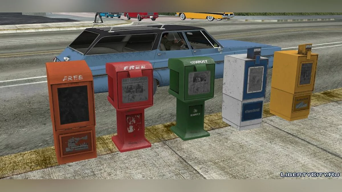 Стенды (автоматы?) с газетами в новом качестве. Особенности: - HQ модели и текстуры - Настроенный прелайт Установка: переместите папку с модом в ваш Mod Loader....