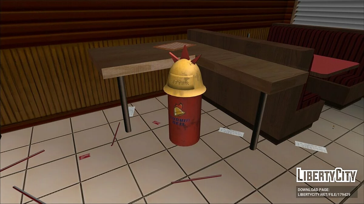 Стандартная мусорка из Cluckin' Bell в HD качестве. Её особенность заключается в качестве и в детализации, а также и в мелочах. Установка — переместите папку с модом в ваш Mod Loader. Вам также может понравиться альтернативный вариант ! ...