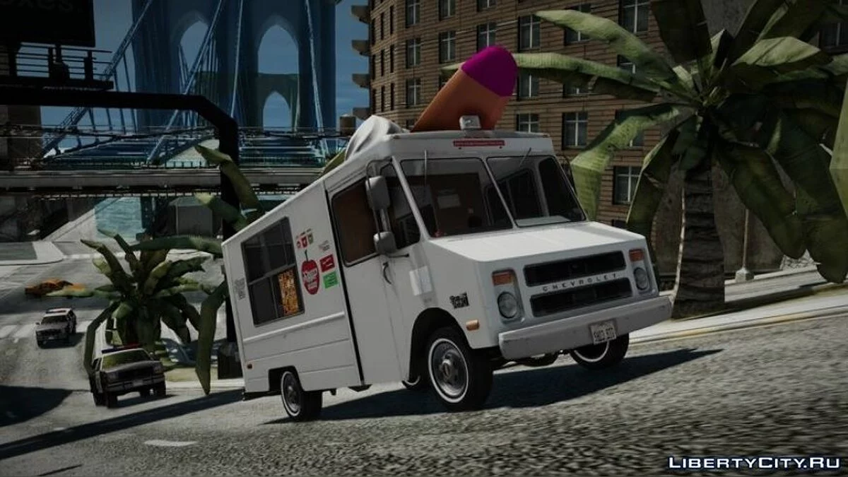 Chevrolet Step Van 30 "Mr. Whoopee" '85 Особенности: - Мод имеет две версии: IVF 2.1.1 и HQLM 2.0; - Качественная аутентичная замена фургончика мороженщика; - Масштаб автомобиля - 110% от первоначальной 3D модели; - Поддержка 2-х цветов (1й - куз...