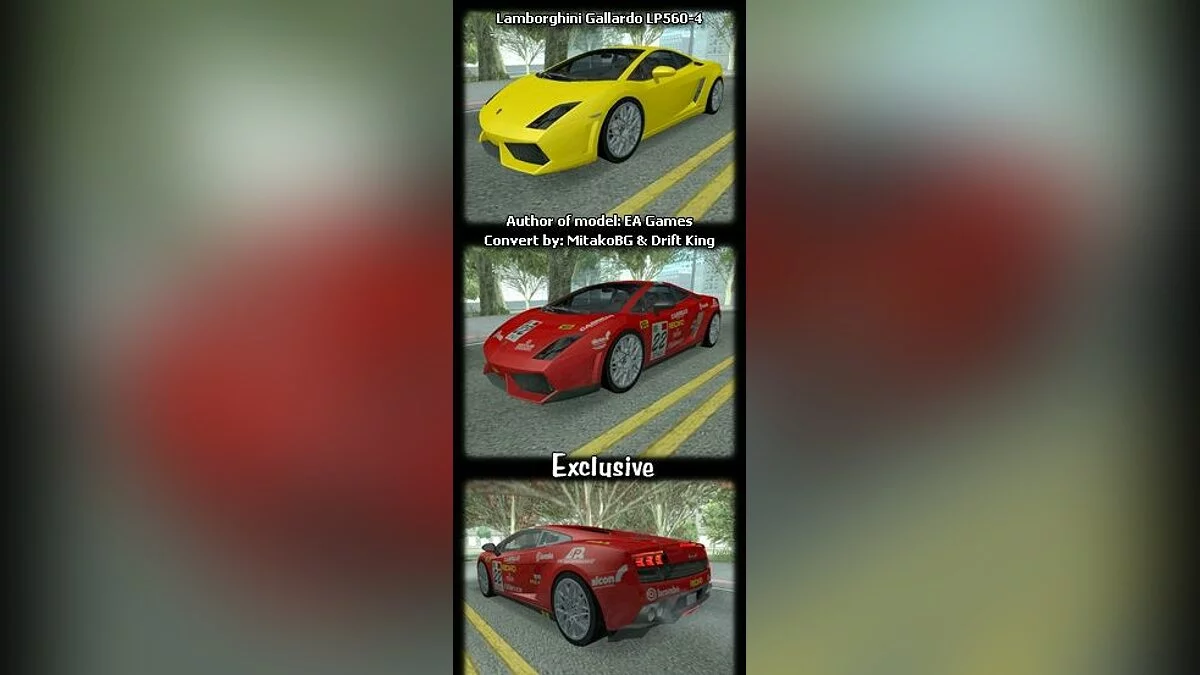 = Качественный конверт Lamborghini Gallardo LP560-4 из J2:HIN = Качественный салон и Двигатель = 3D Надписи & Светодиодные огни = Реалистичное управление = Все детали и огни рабочие = SA Огни и номерной знак = Собственная коллизия и тень = Прекр...