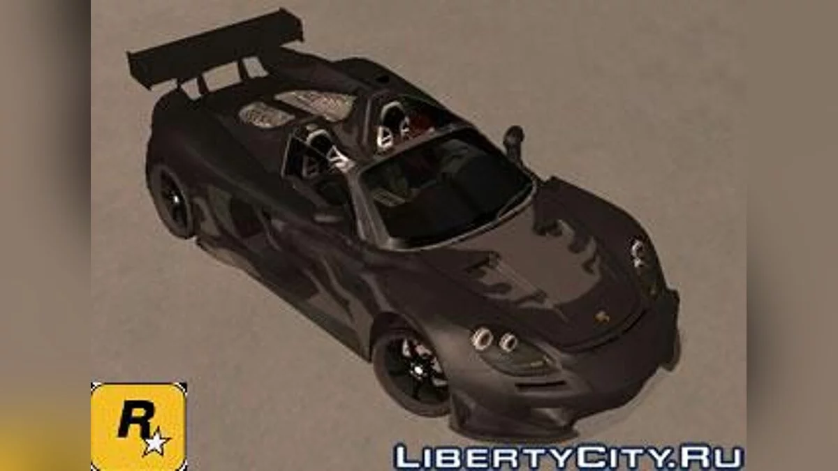 Porsche Carrera GT' 03 для GTA San Andreas. Low Poly & SA Style. - Версия с адаптацией к IVF. - Версия со строкой в vehicles.ide для нормального размера колёс. - Версия Spyder (без крыши). Все части повреждаются, открываются. Имеется LOD....