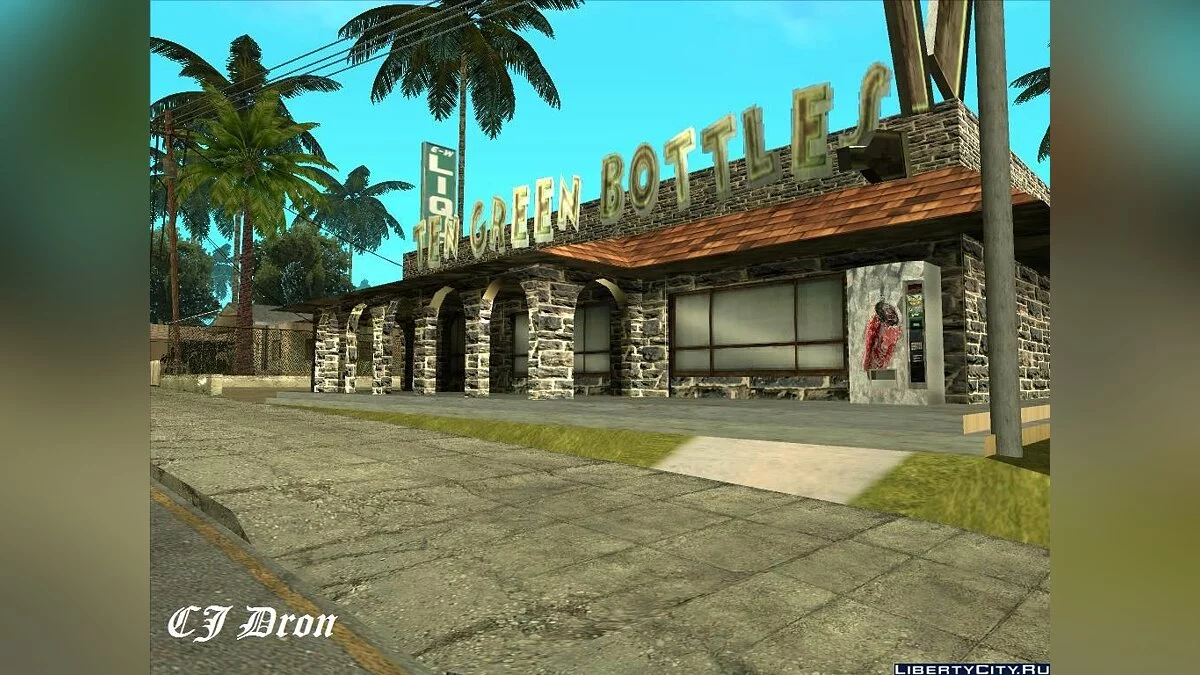 LS_TEN GREEN BOTTLES v3 Данная модификация, обновит старые текстуры бара "Десять зеленых бутылок". Он расположен возле Grove Street. Теперь снаружи он выглядит намного приличнее. Особенности: Обновленные текстуры; Новые окна; Новые двери;...