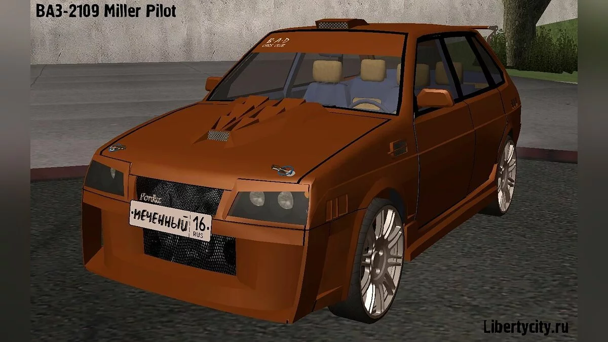 ВАЗ-2109 для GTA San Andreas. Кузов: ВАЗ-2109 имеет пятидверный хэтчбек кузов с динамичным и обтекаемым дизайном. Передняя часть автомобиля имеет округлые фары и решетку радиатора с круглым логотипом ВАЗ. Бампера: Автомобиль оснащен черными, ...