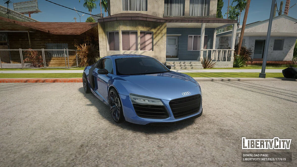 Audi R8 V10 Plus 5.2 FSI 2013 — среднемоторный полноприводный спортивный автомобиль, производимый немецким автопроизводителем для вашей GTA San Andreas. Особенности: Экстерьер высокого качества; Качественные текстуры; Адаптировано к IVF; ...