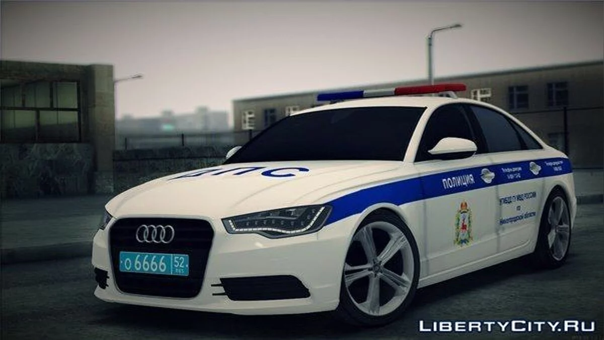 Audi A6 ДПС для GTA San Andreas Особенности: - Качественная модель; - Качественный интерьер; - Качественные шины и диски; - HQ салон. - Русские гос.номера. - Хорошая модель повреждений; - Реалистичный свет фар; - Собственная тень; - Располо...