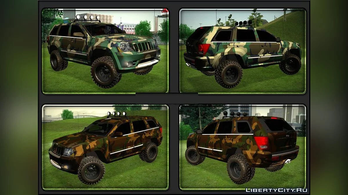 Красивый, яркий и качественный автомобиль марки JEEP внесёт каплю разнообразия в любую подборку автомобилей вашей GTA San Andreas.