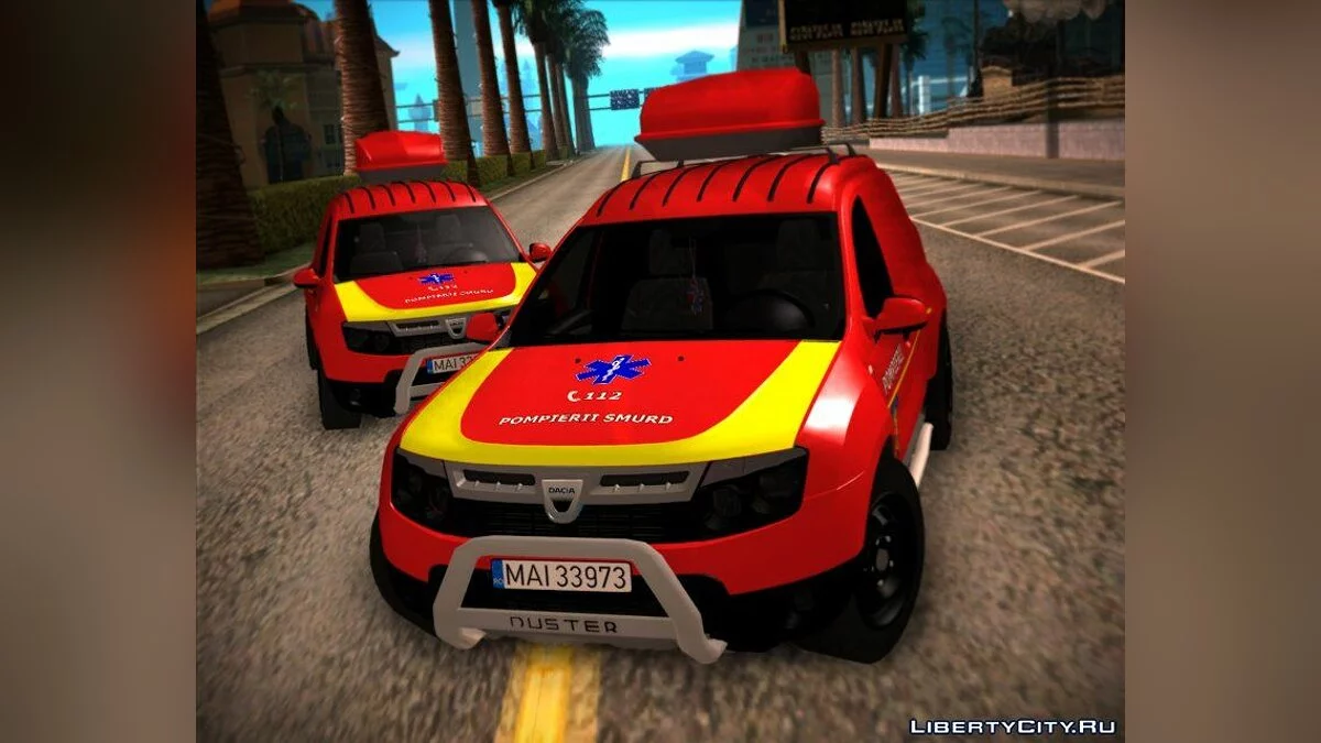 2010 Dacia Duster - Pompierii для GTA San Andreas Особенности: - Качественная модель. - Качественный салон. - Качественные текстуры. - Исправлены баги. - Номера Румынии. Приятной игры!...