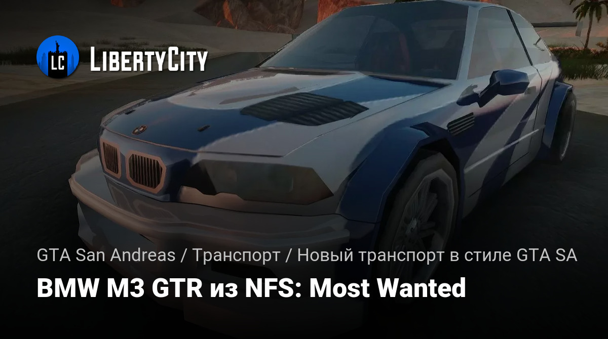 BMW M3 GTR From: NFS:MW (Original MW Version) Особенности: - Хорошая модель; - Неплохие текстуры; - Поддерживает основные функции игры.