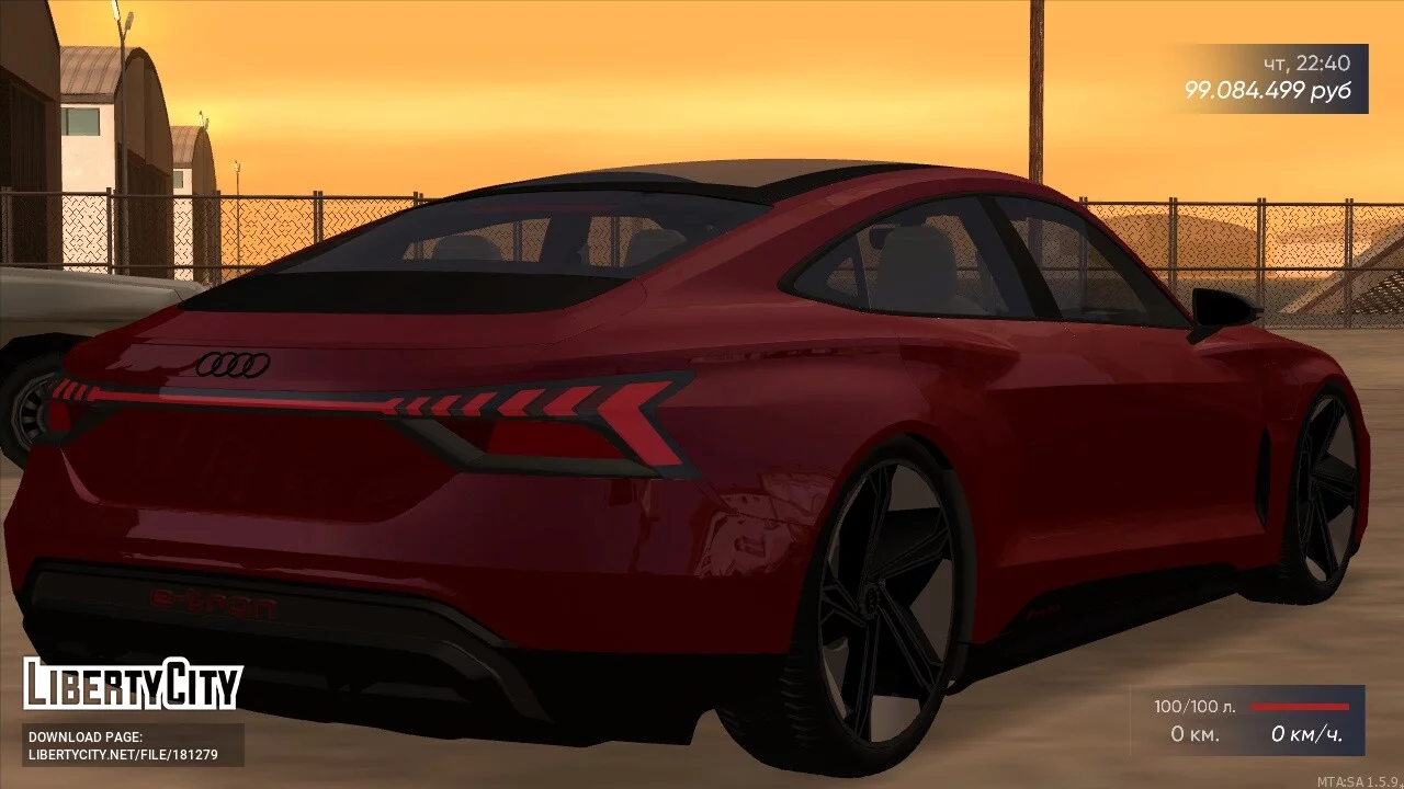Audi e-tron GT для GTA San Andreas. Audi e-tron GT — это электрический спортивный автомобиль. Внешне Audi e-tron GT имеет узнаваемую, стильную и динамичную линию кузова. Он обладает аэродинамичной формой, которая способствует улучшенной эффективнос...