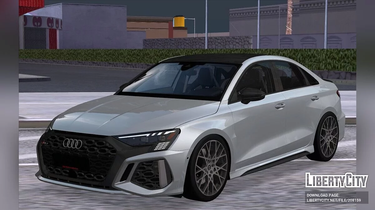 Audi RS3 2023 для GTA San Andreas. Адаптация к: Тонировка ( lob_steklo, pered_steklo, zad_steklo); Поворотники (leftflash, rightflash)( shader_turn_left_0, shader_turn_right_0 ); Оптика (vehiclelights128 ); Номер ( nomer, ram)( license_fra...