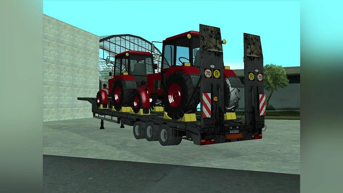 Полуприцеп трал для GTA SA имеет 2 экстры: 2 МТЗ-82 и фронтальный погрузчик THW. Мод получился очень качественным и красивым.