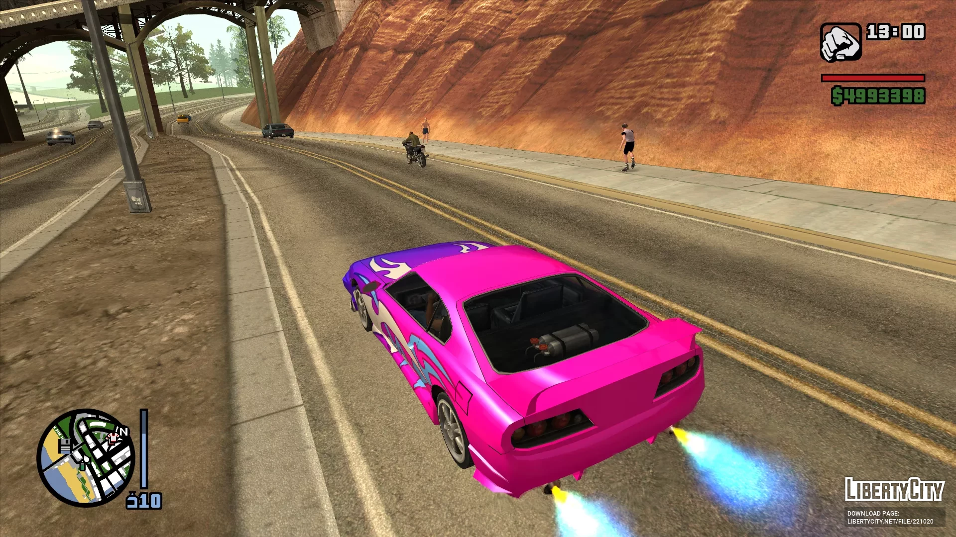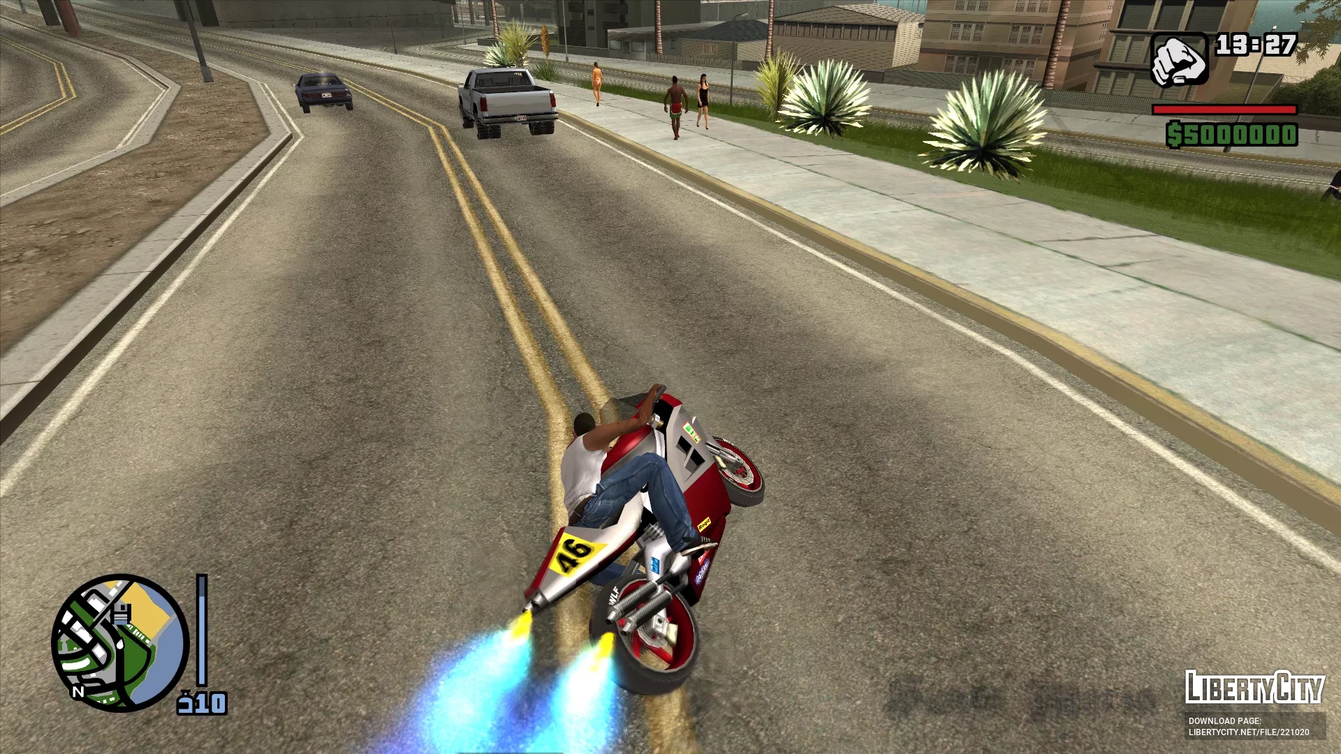 Этот мод позволяет точно контролировать момент использования нитро, также вы можете выполнить purge нитро, нажав кнопку нитро без ускорения, мод позволяет мотоциклам корректно использовать нитро, отображает количество доступного нитро с помощью индикатора рядом с миникартой, и всё настраивается в ini-файле.