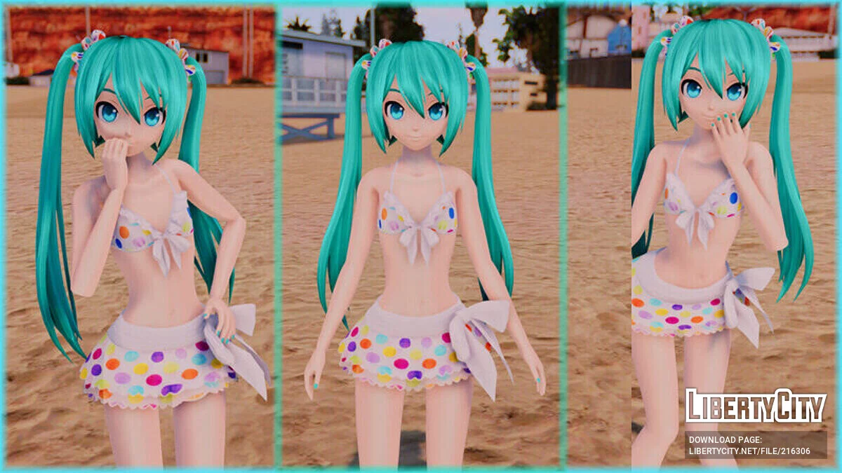 PDFT Hatsune Miku Polka Dot Bikini + Animated Face Особенности: Качественная модель; Отличные текстуры; Подвижный скелет; Анимация лица. Приятной игры. ...