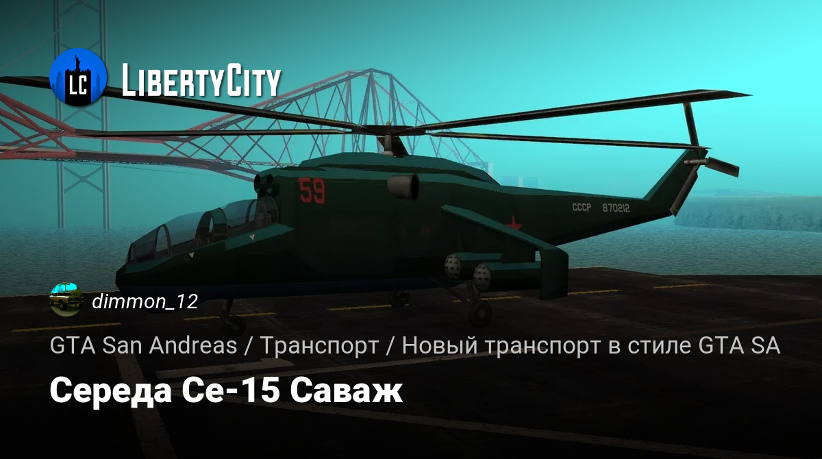 Привет. Здешний гость — из GTA Online. Транспортно-боевой вертолет Savage, ремастированный в соответствии с советскими ВС. Отсюда полное русскоязычное название — Середа Се-15 Саваж.