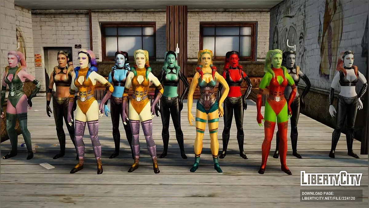 GTA:O Green & Purple Alien Bodysuits Наряды инопланетян из DLС "Arena Wars", которые стали популярные в этом году. Особенности: - Среднее качество модели и текстур; - Подвижный скелет; - Можно заменить на любых персонажей (по умолчанию Ballas и ...