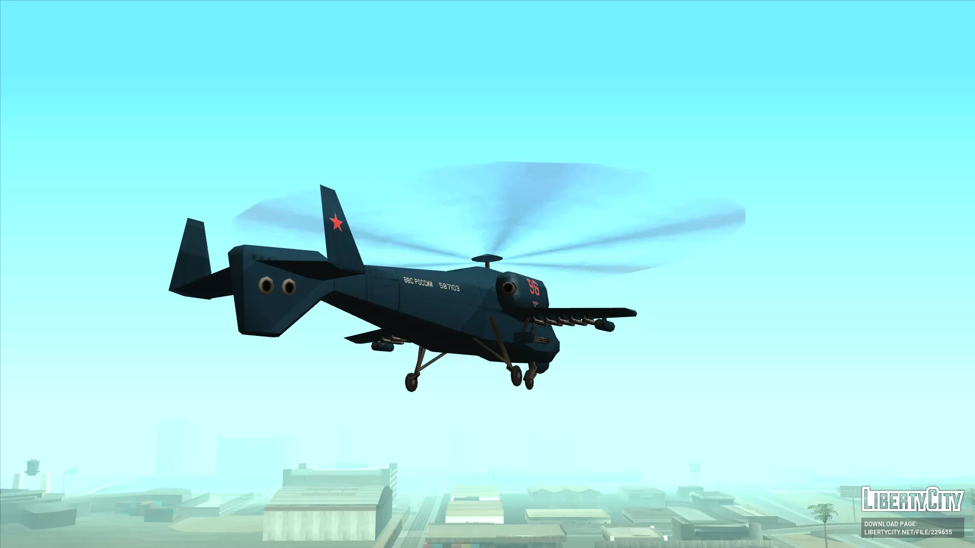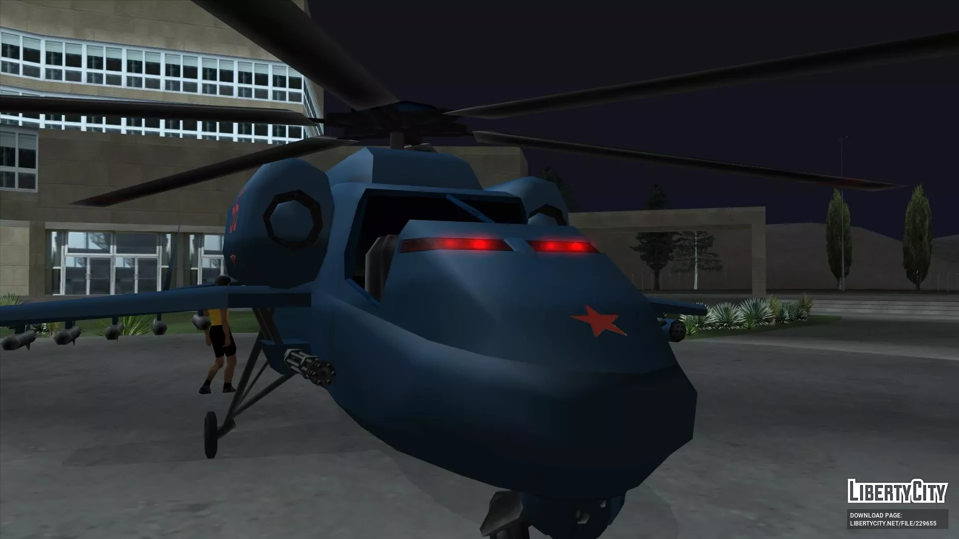 Сделан с нуля при использовании ассетов от Rockstar Games. Имеет стиль SA, собственные коллизию, LOD, тень. Вертолет создан на основе Urga Mstitel из Just Cause 3. Главные отличия от него — более плавные черты корпуса, иная форма визора, более выраженные сопла системы NOTAR, сдвигающиеся внутрь корпуса дверки кабины, у каждой из которых теперь есть окошко.