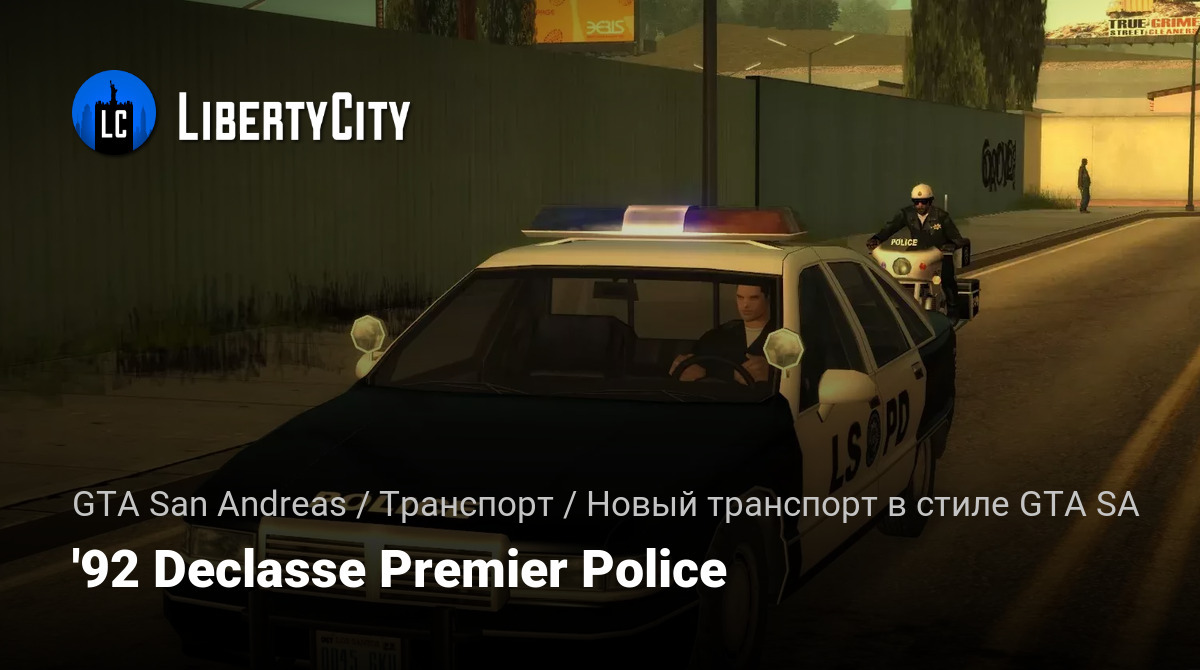 Это lore-friendly полицейский седан для GTA: San Andreas, созданный на базе гражданской версии Declasse Premier ’92. Модель полностью адаптирована под стиль игры и отражает атмосферу полицейских автомобилей начала 90-х, имеется несколько экстр (extras).