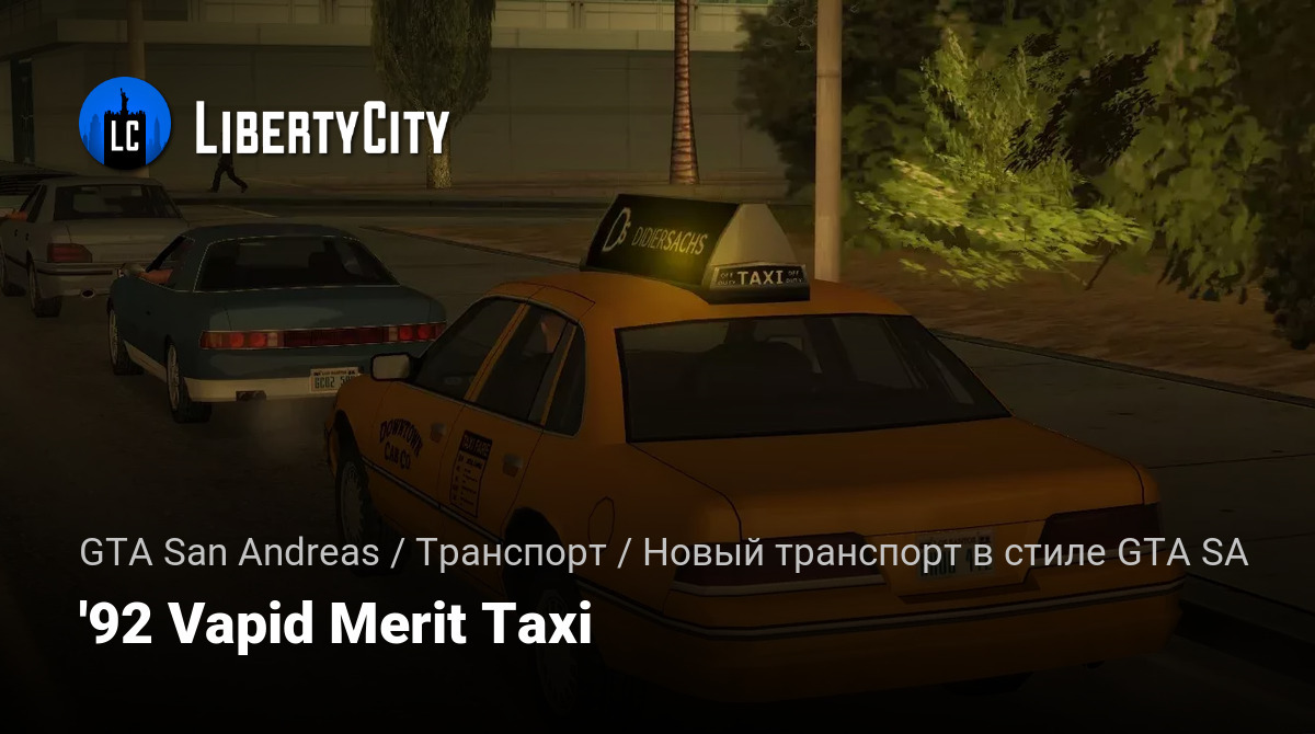 Это lore-friendly такси, построенное на основе гражданской версии Vapid Merit. Машина сохраняет характерные черты оригинального транспорта, но получила фирменную окраску и тонкие детали, которые делают её узнаваемой на улицах города. Естественная посадка в городской поток и атмосфера начала 90-х делают её идеальным вариантом для роли служебного такси.