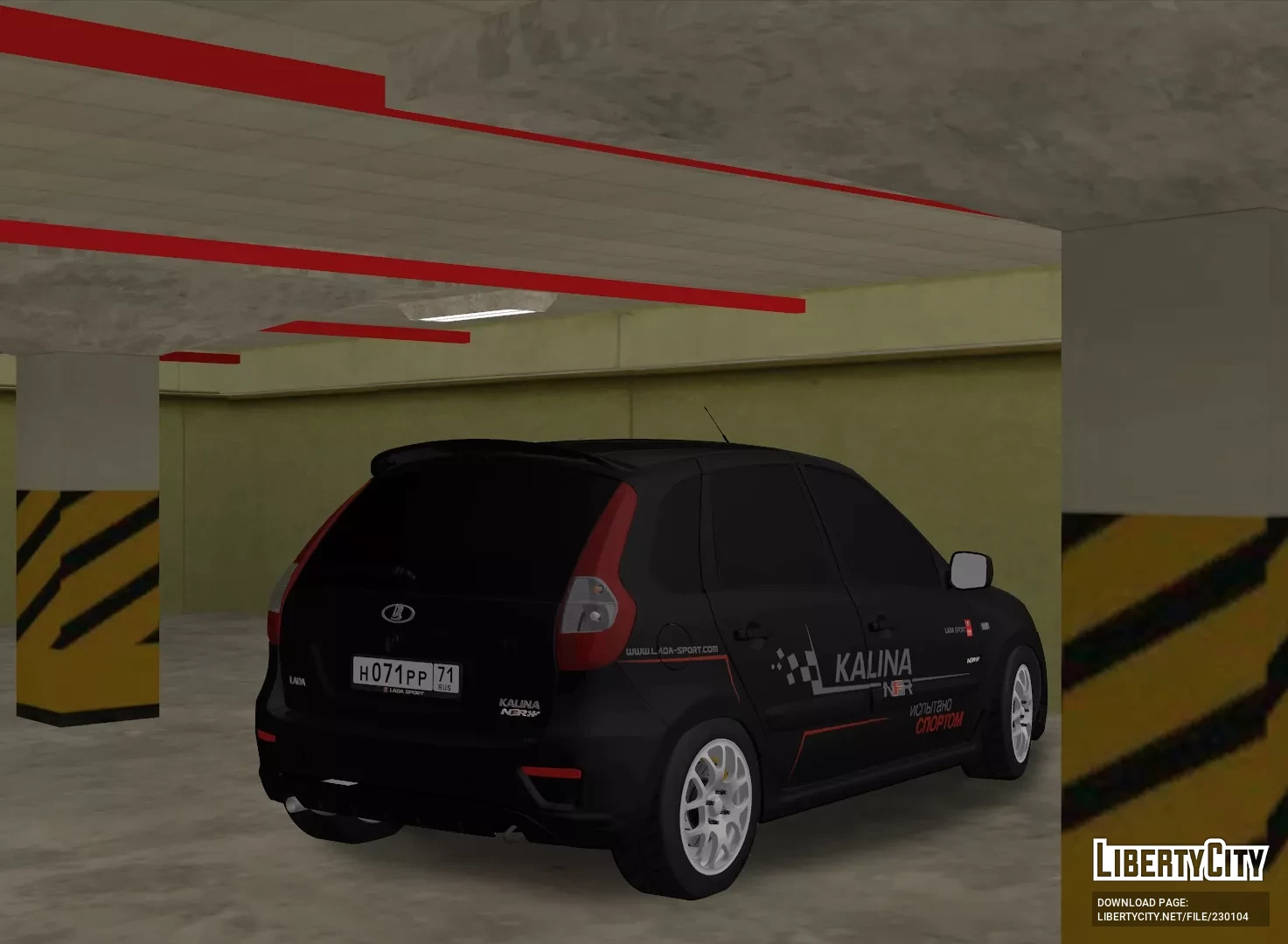 • Кузов окрашен в глубокий чёрный цвет с фирменными спортивными наклейками “KALINA NFR”, логотипами Lada Sport и надписью “Испытано спортом”.