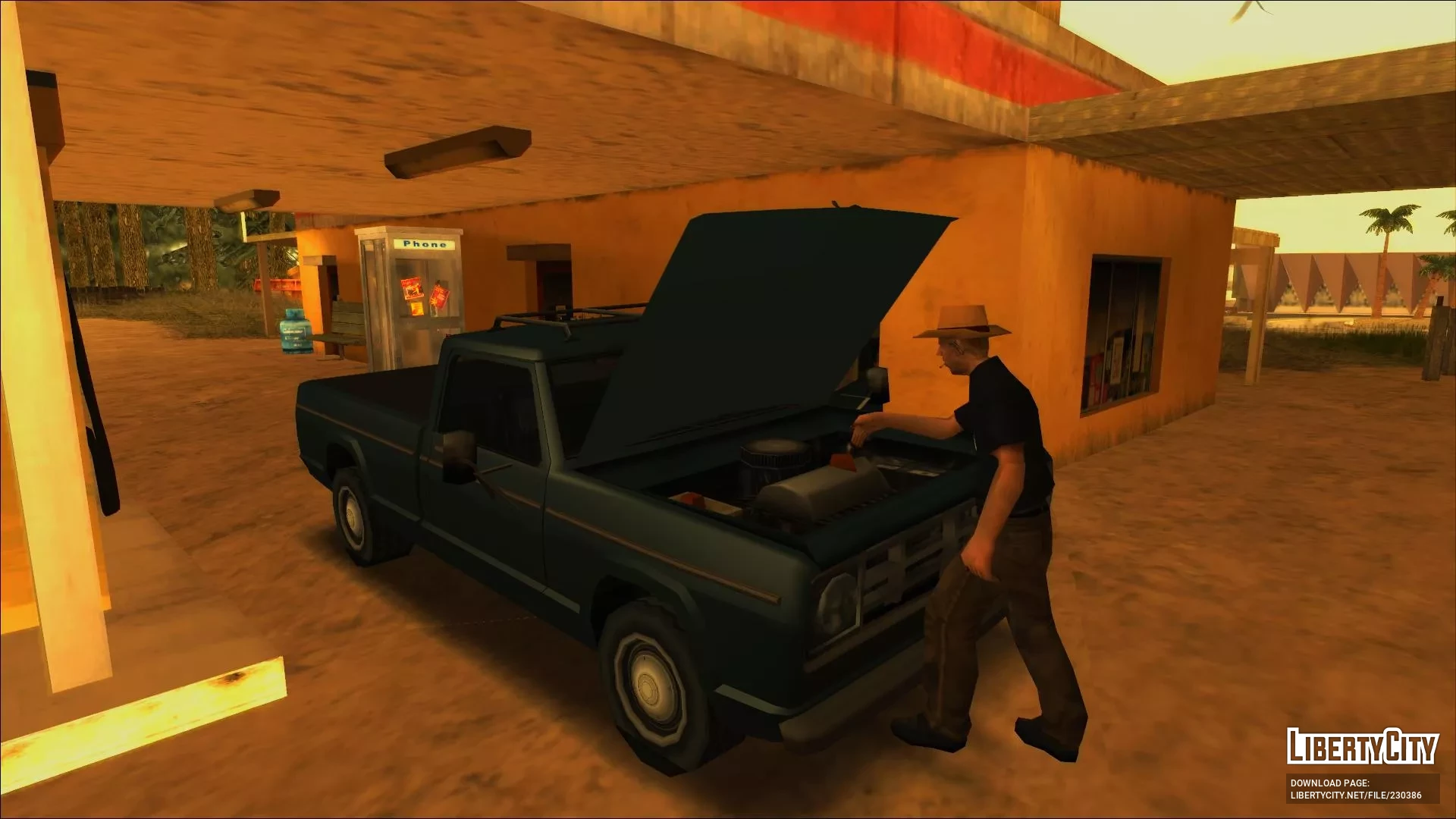 - Имеет экстры (двустволка, флаг конфедератов, разный мусор в багажнике)