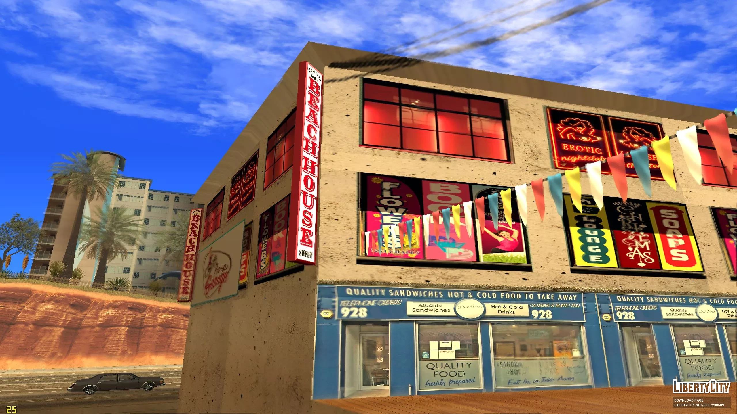 Мод заменяет текстуры пляжных магазинов на HD-версии, что придаёт игре совершенно новый вид. Все элементы и вывески тщательно прорисованы. Оригинальные текстуры были увеличены до высокого качества, а также добавлены новые. Отлично подойдёт для тех, кто собирает HD-сборку, и не только.