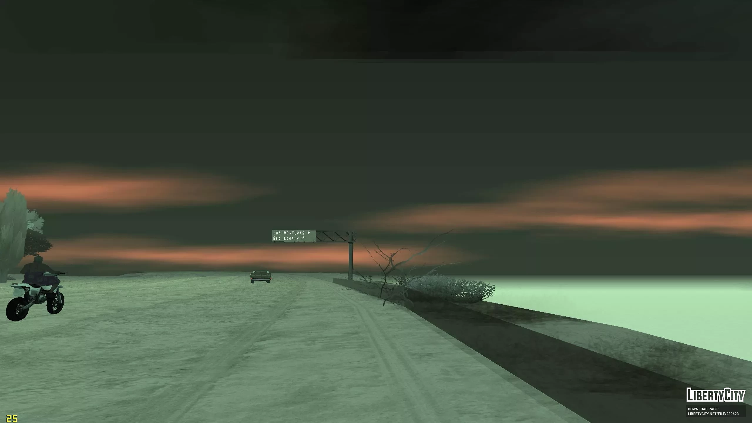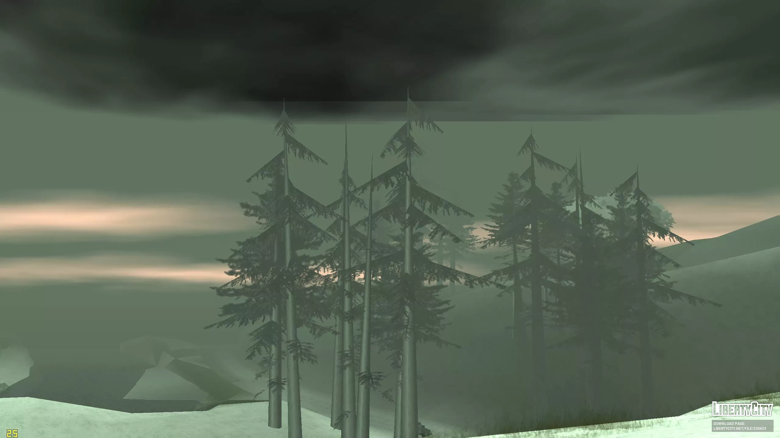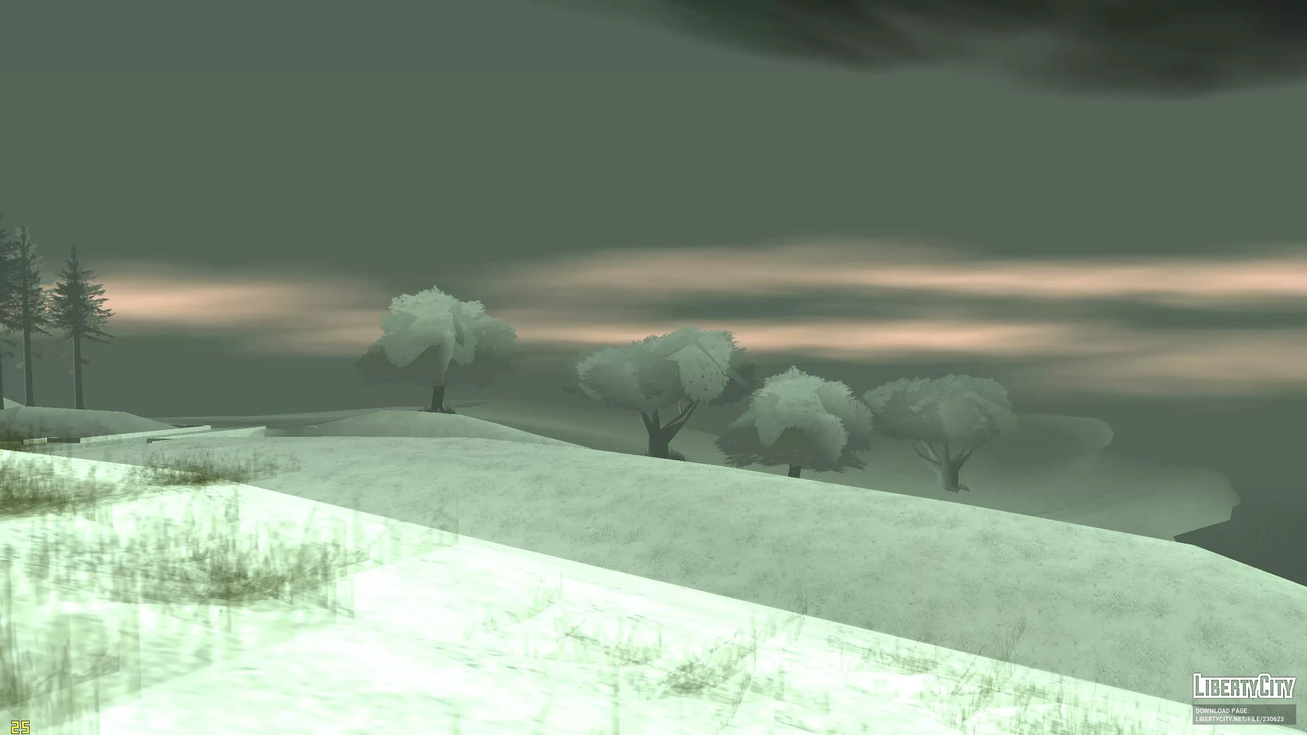 Мод добавляет полярный зимний таймцикл для GTA San Andreas, создавая атмосферу суровых холодов и постоянной зимней пасмурности. Небо затянуто тяжёлыми облаками, солнце почти не видно, а всё вокруг покрыто морозной дымкой. Идеально подходит для зимних сборок.