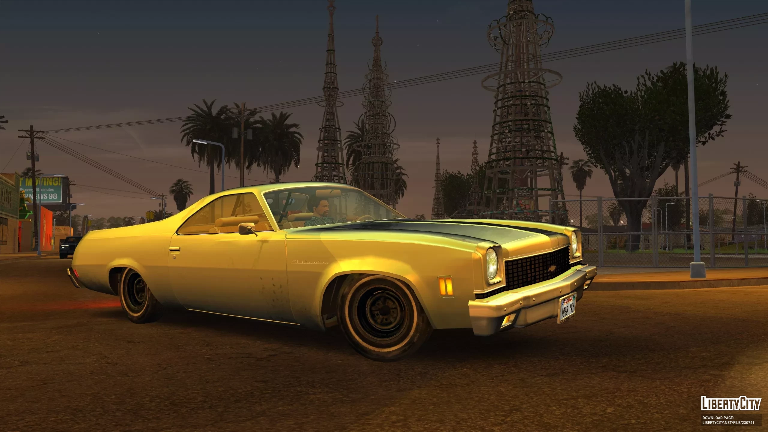 Мод добавляет в GTA San Andreas классический американский пикап Chevrolet El Camino 1973 в обновлённой версии v1.1. Модель сочетает стиль ретро и высокое качество исполнения, а также поддерживает популярные графические и функциональные модификации.