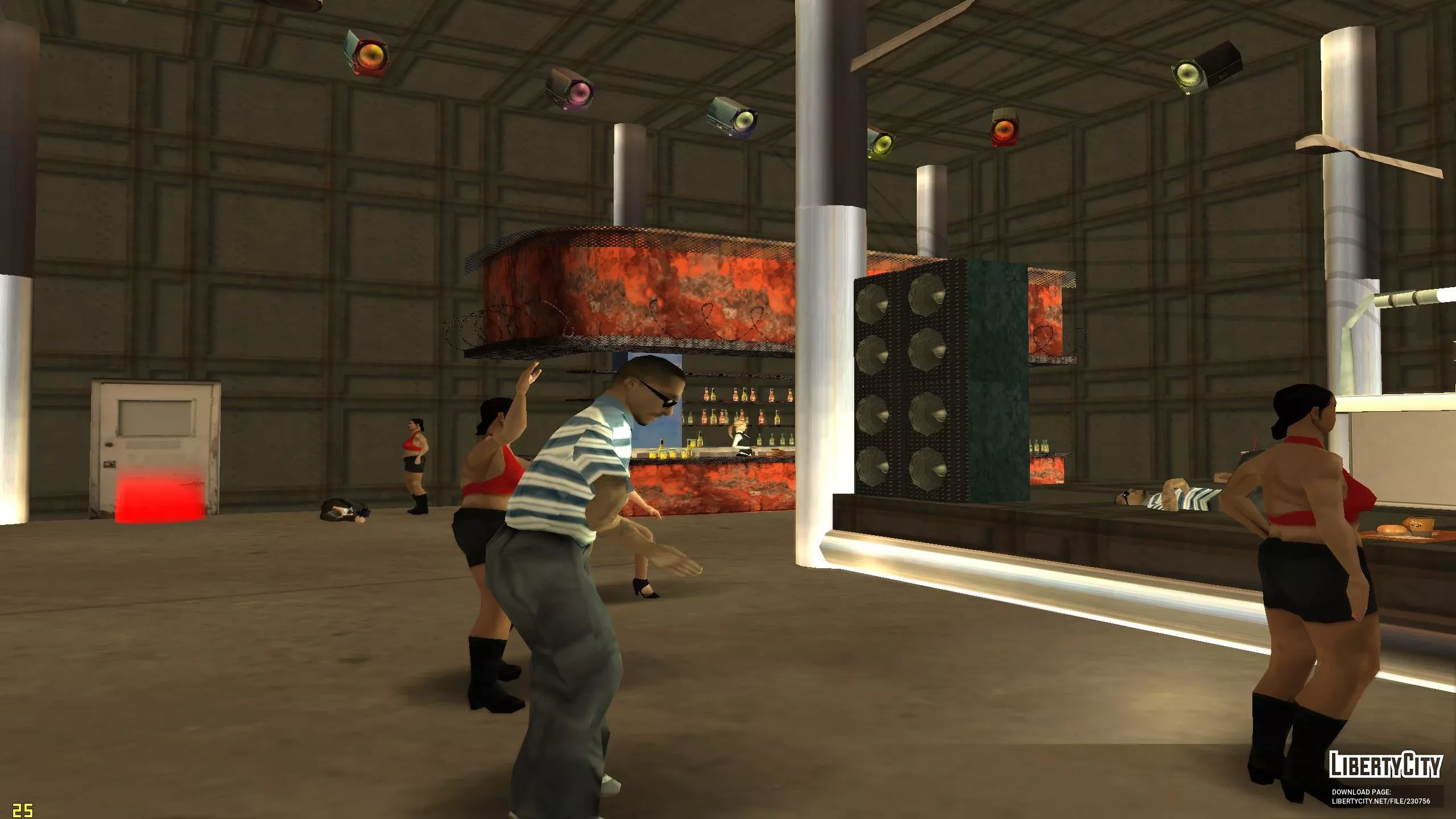 Мод добавляет в GTA San Andreasзакрытый клуб для своих в районе Гантон. Здание расположено в старом ржавом ангаре, но внутри полностью оборудовано для гостей: сцена с диджеем, цветомузыка, бар с напитками и кальянная. В клубе играет громкая музыка, посетители танцуют, а пьяные гости создают атмосферу настоящего местного клуба.